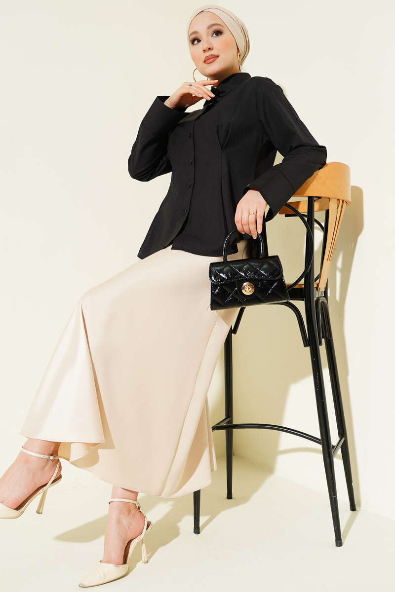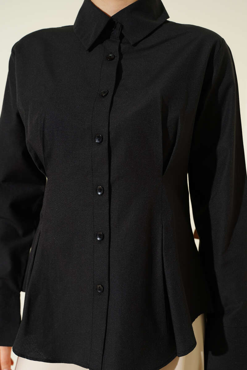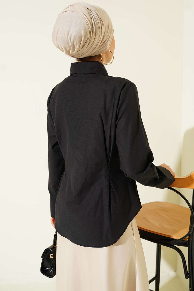 Brit Düğmeli Gül Detaylı Abiye Gömlek Siyah
