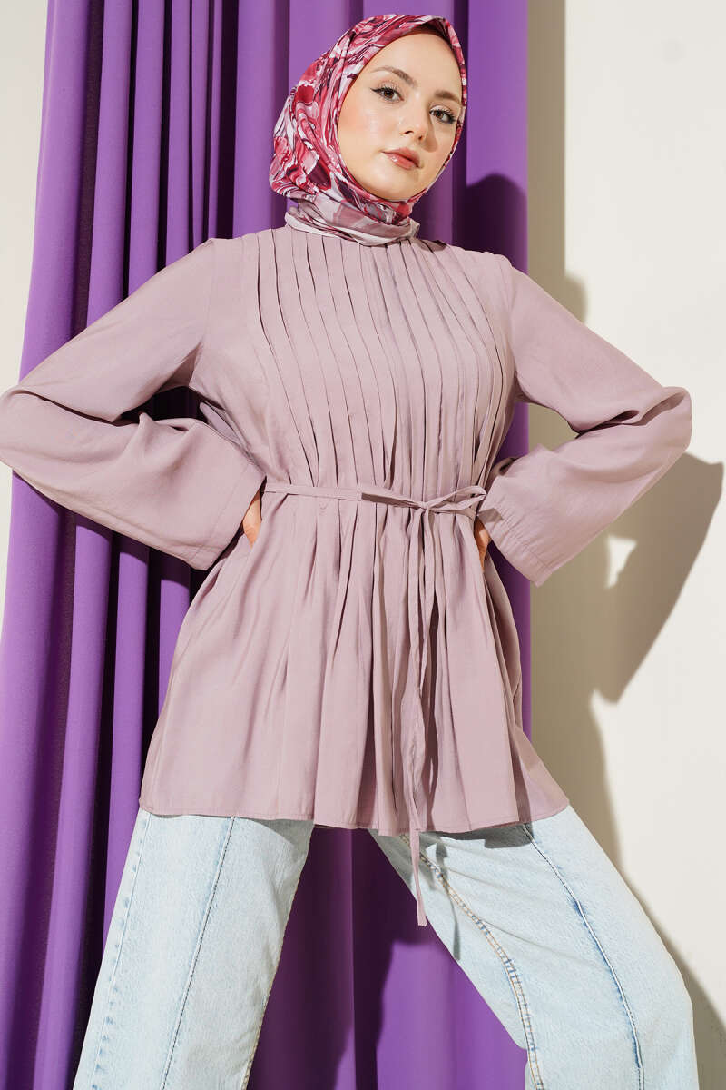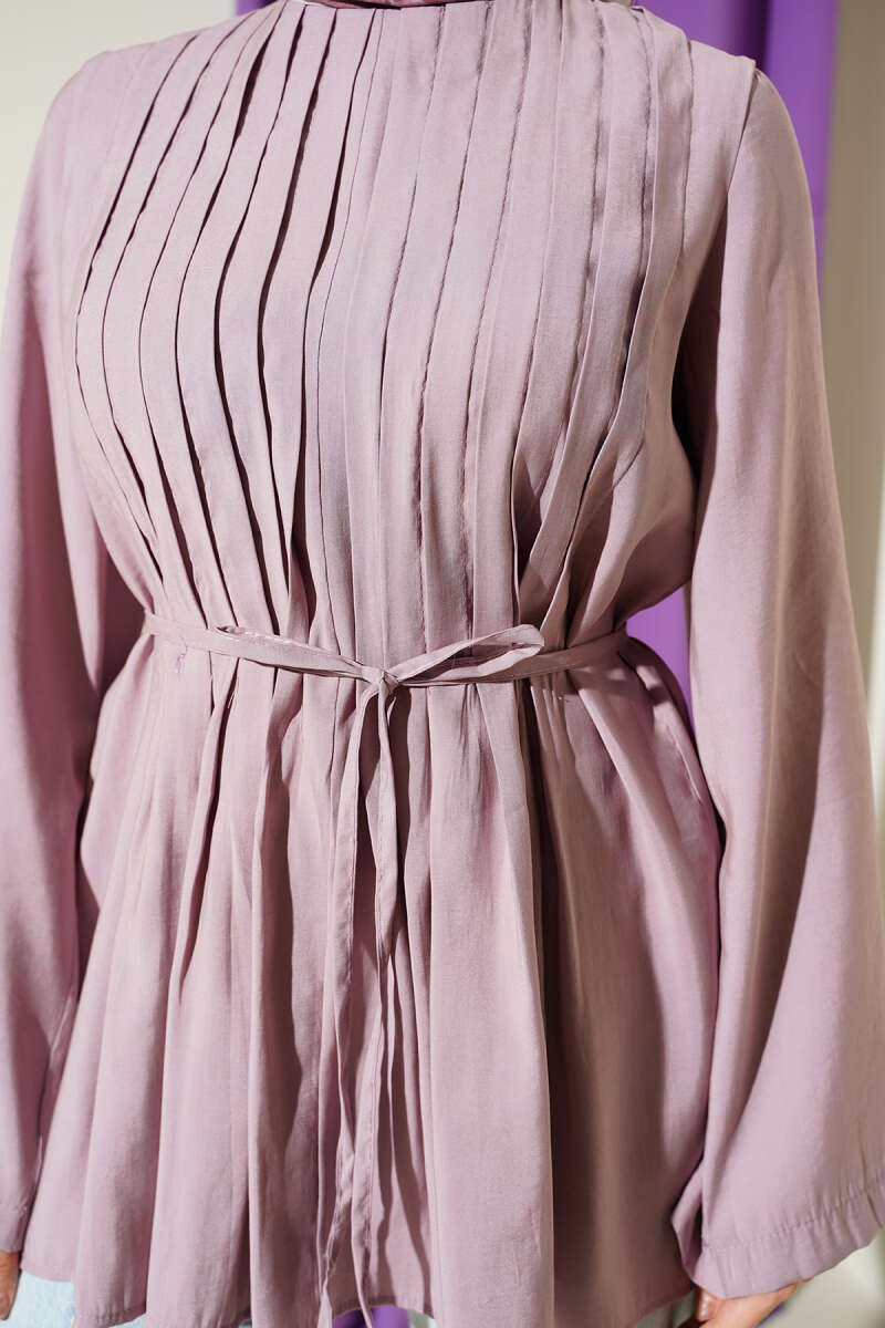Önü Pileli İp Kuşaklı Tunik Beyaz