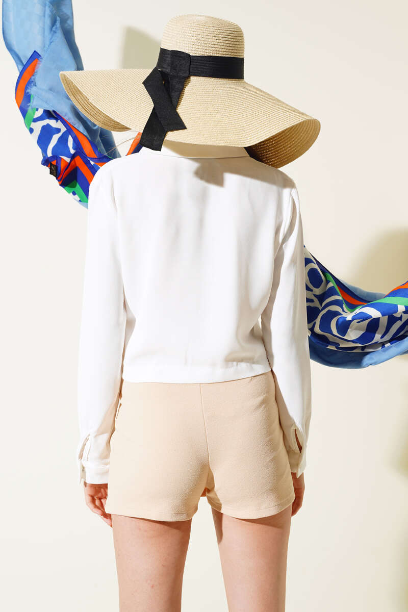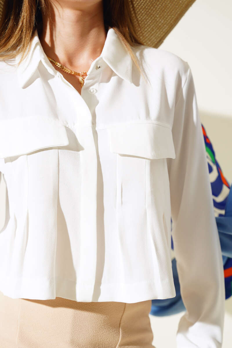 Önü Pileli Kısa Gömlek Saks