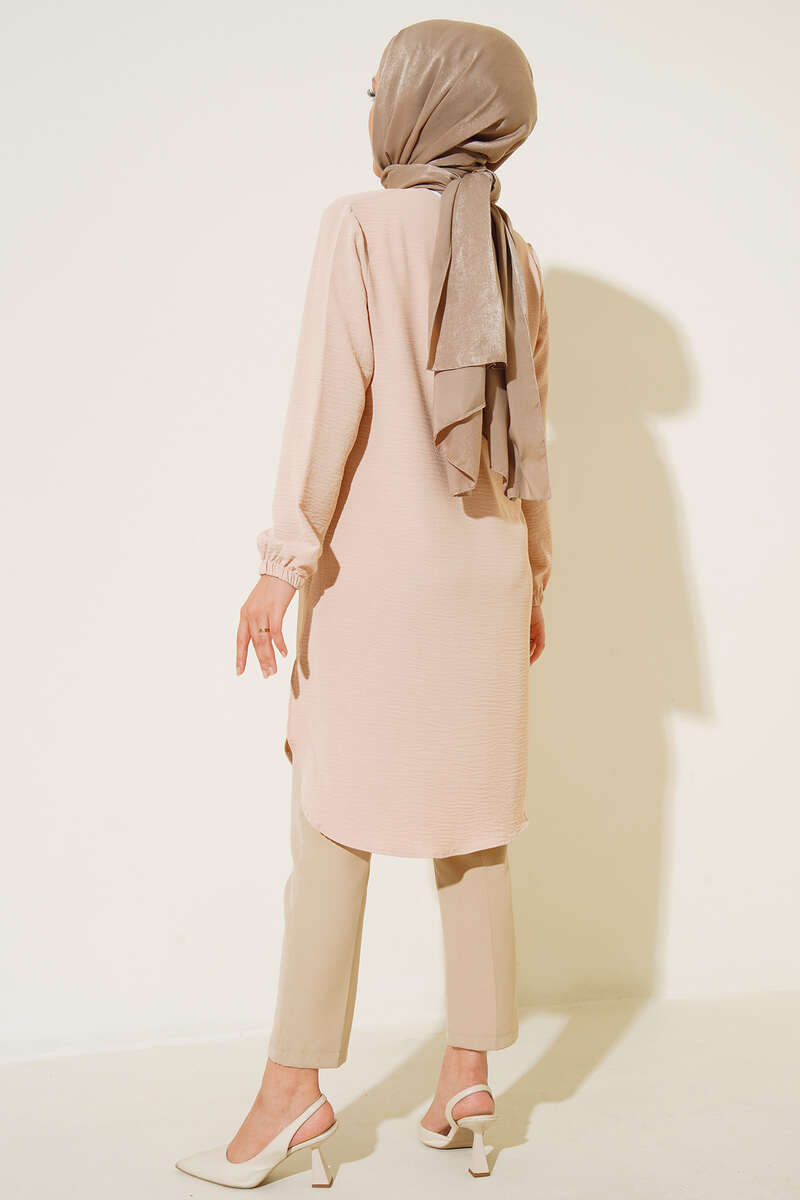 Yeni sezon tuniğimiz şık tasarımıyla dikkatleri üzerine çekmektedir. Tuniğimizin önü taş süslemeli ve takı detaylıdır. Bilekleri lastiklidir. Yanları yırtmaçlıdır. Ensesinde düğme bulunmaktadır. Her kıyafetinizle rahatlıkla kombin yapabilirsiniz. Farklı renk seçenekleri mevcuttur.