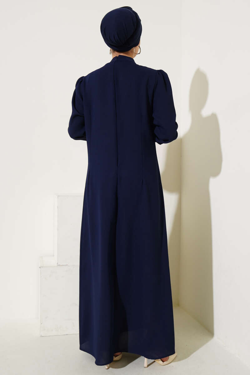 Omuz Pelerin Detaylı Abiye Elbise Lacivert