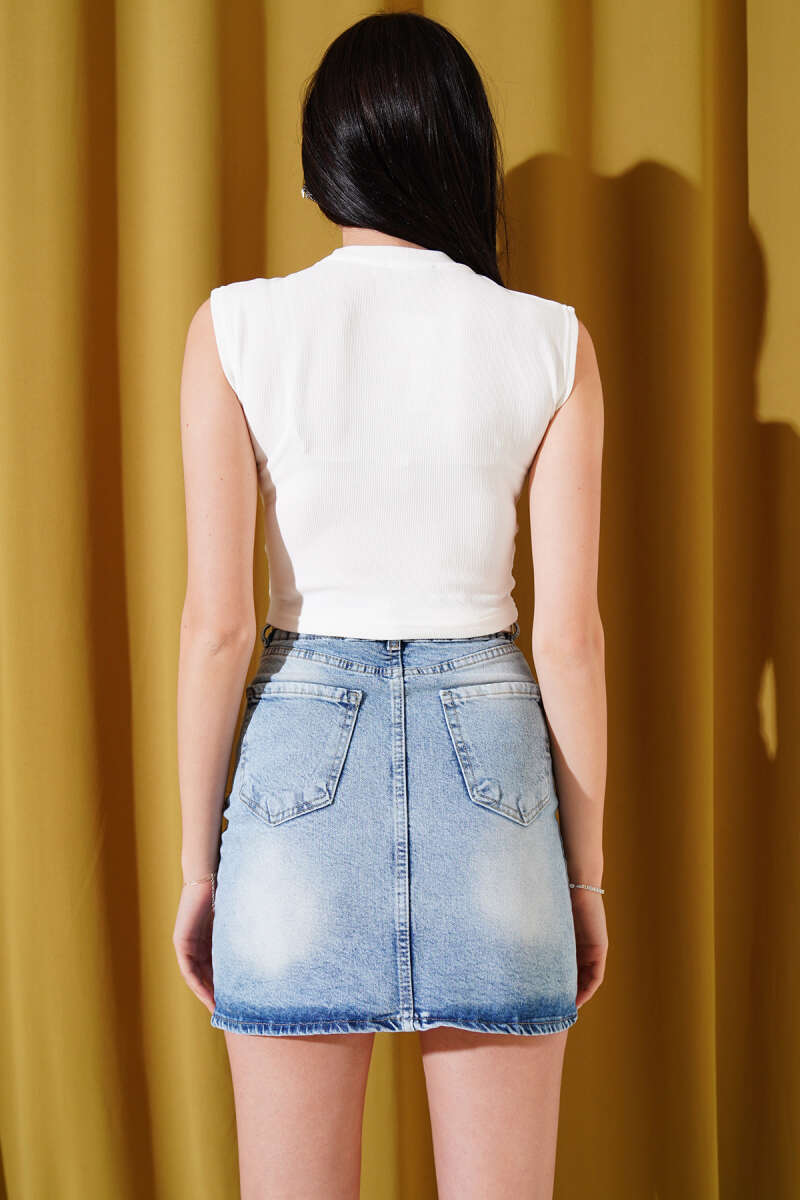 Önü Taş Süslemeli Kolsuz Crop Beyaz