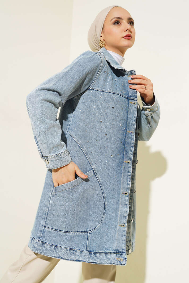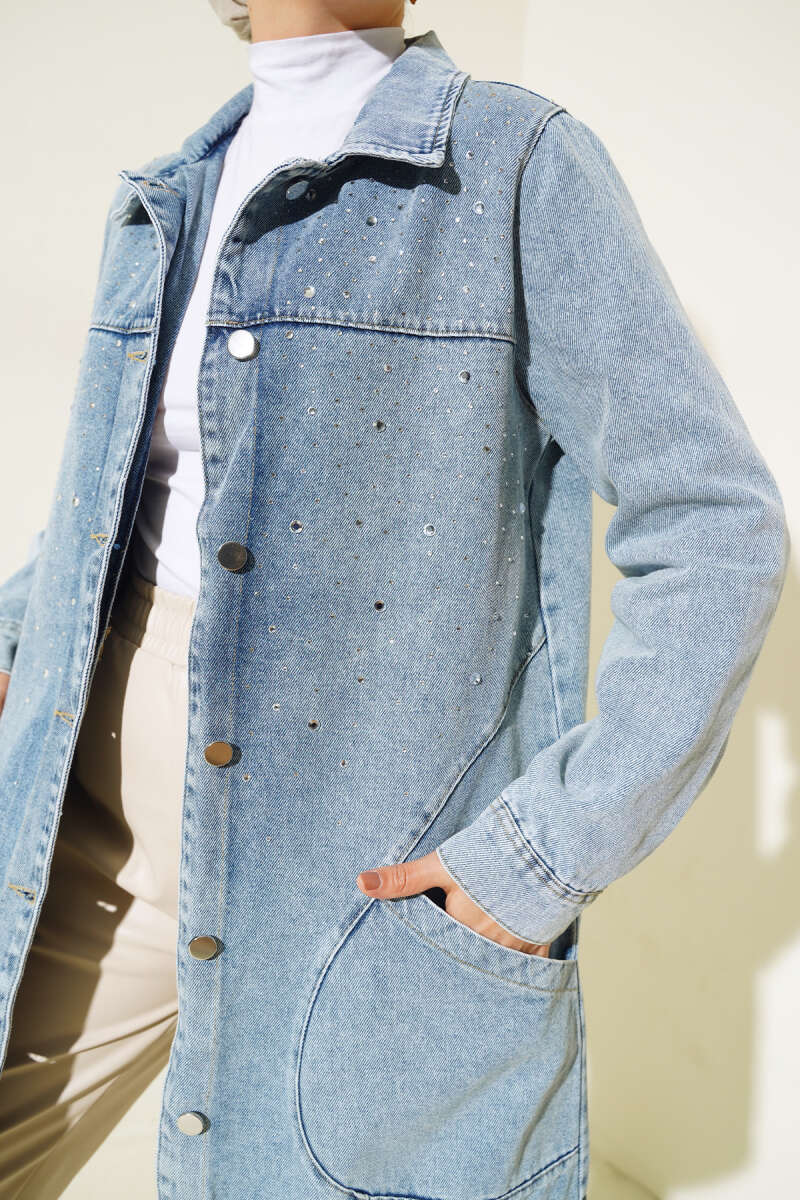 Önü Taş Süslemeli Kot Ceket Kot Mavisi