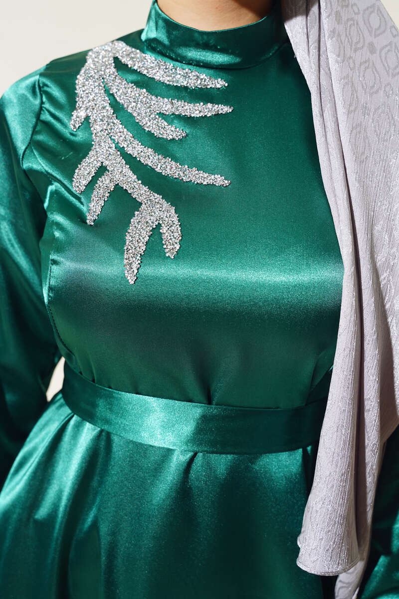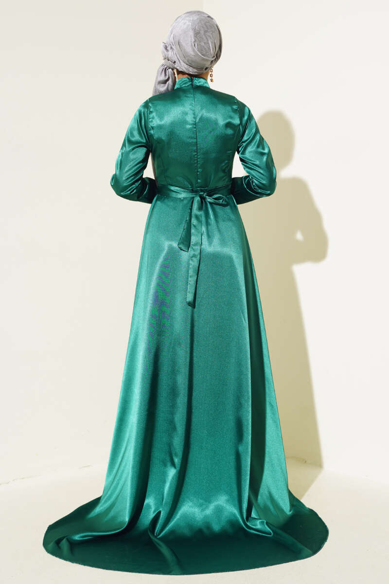 Bilek Bağlamalı Kuşaklı Abiye Elbise Haki