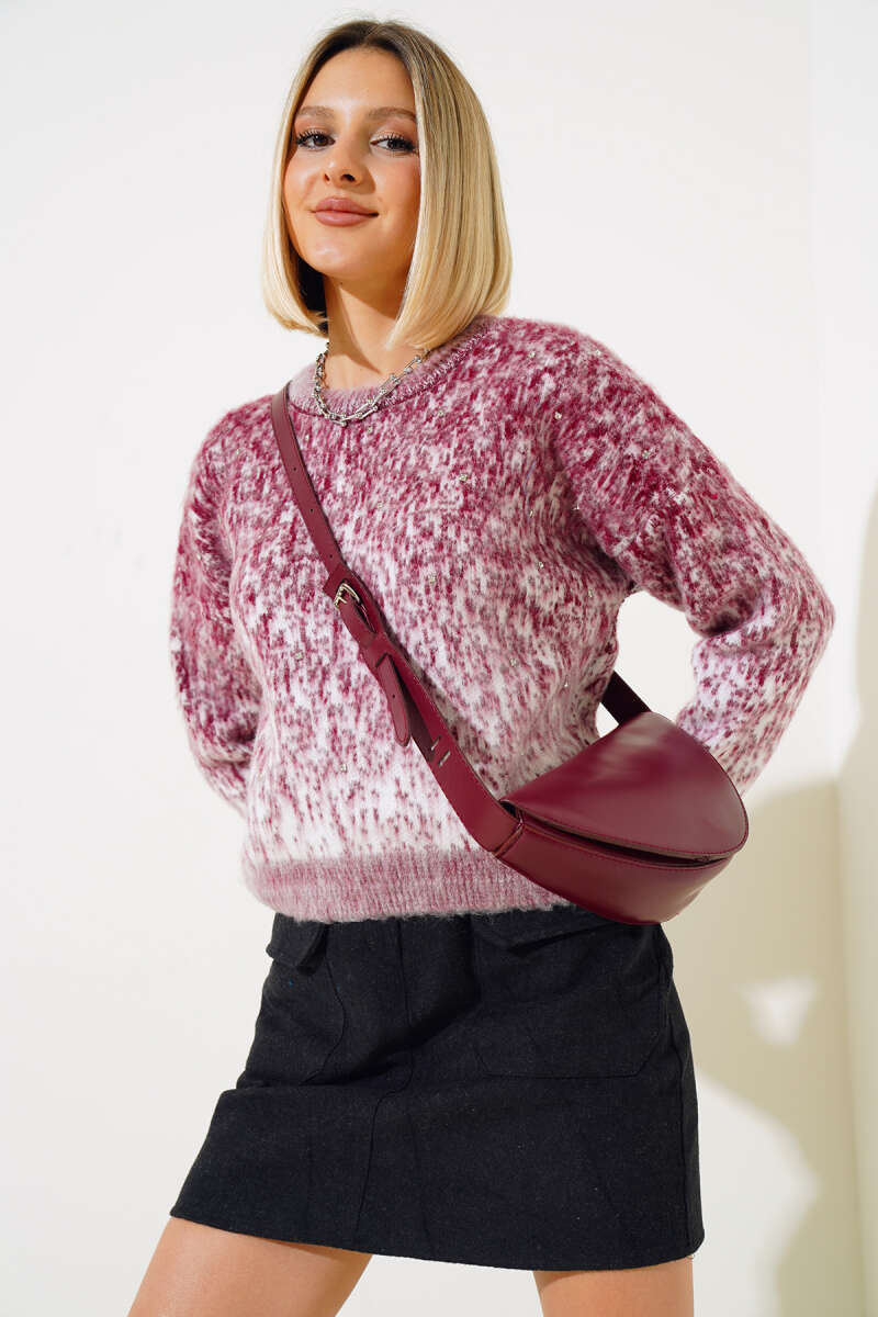 Saçaklı Detaylı Fermuarlı Hırka Bordo