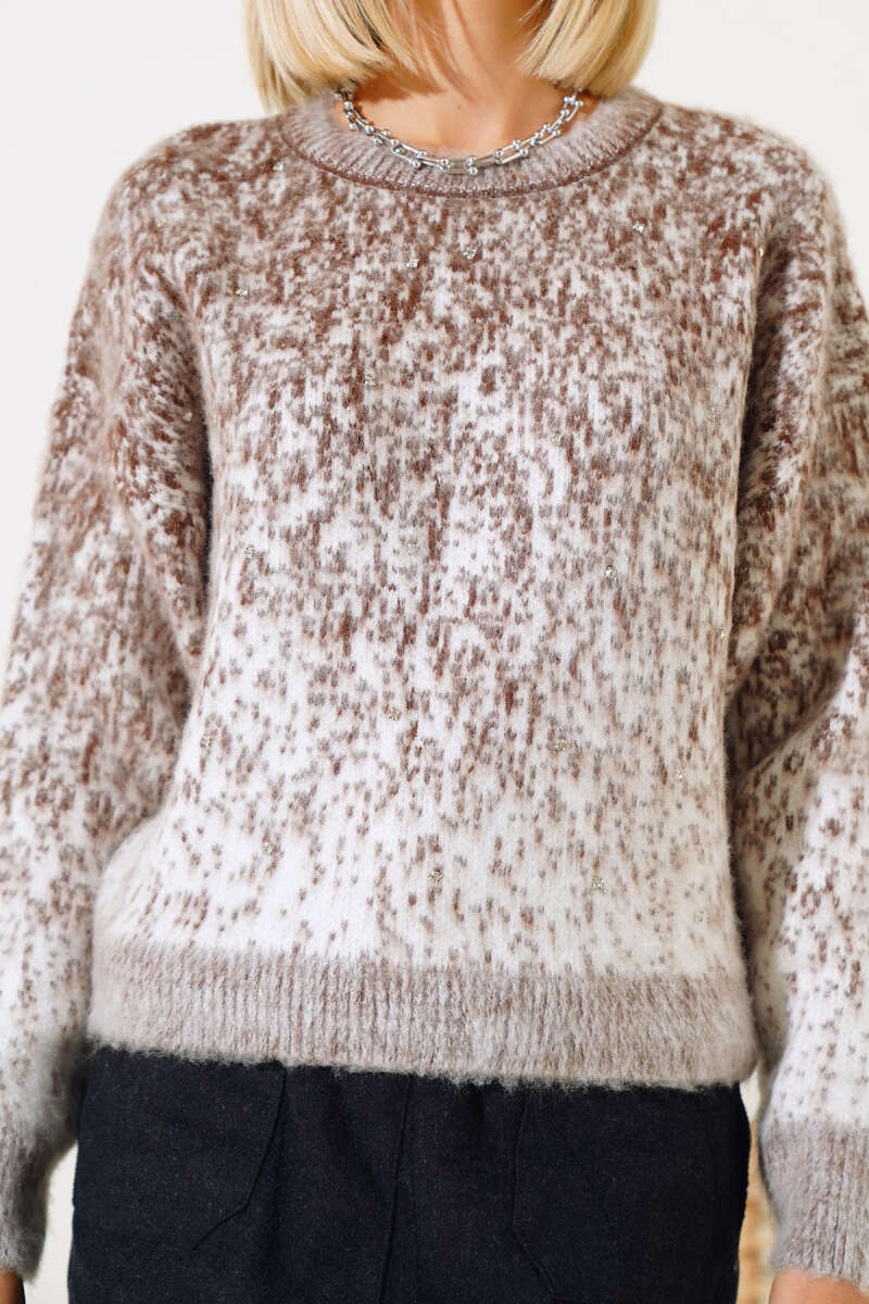Desenli Uzun Kol Tül Bluz Acı Kahve