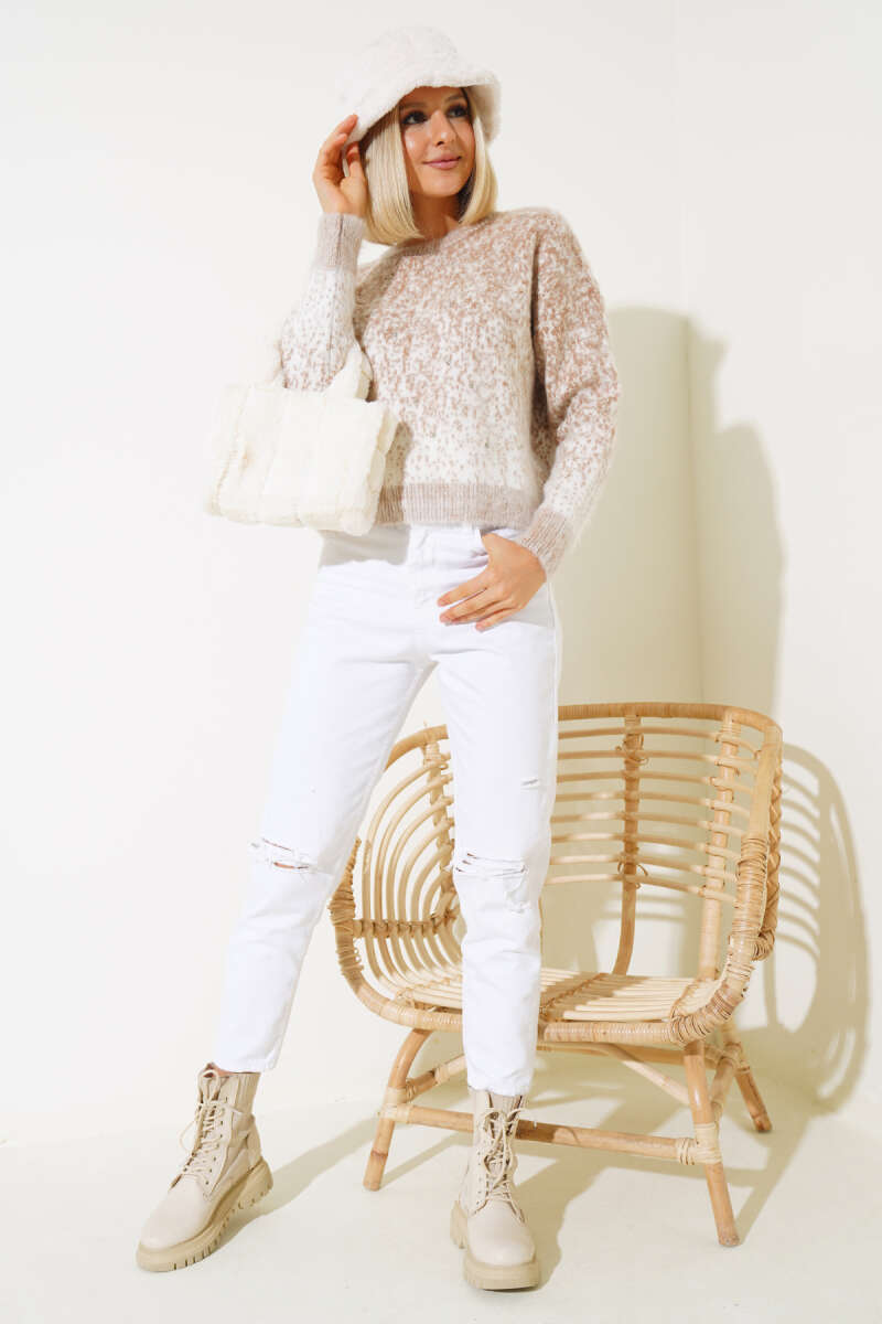 Saçaklı Detaylı Fermuarlı Hırka Ekru