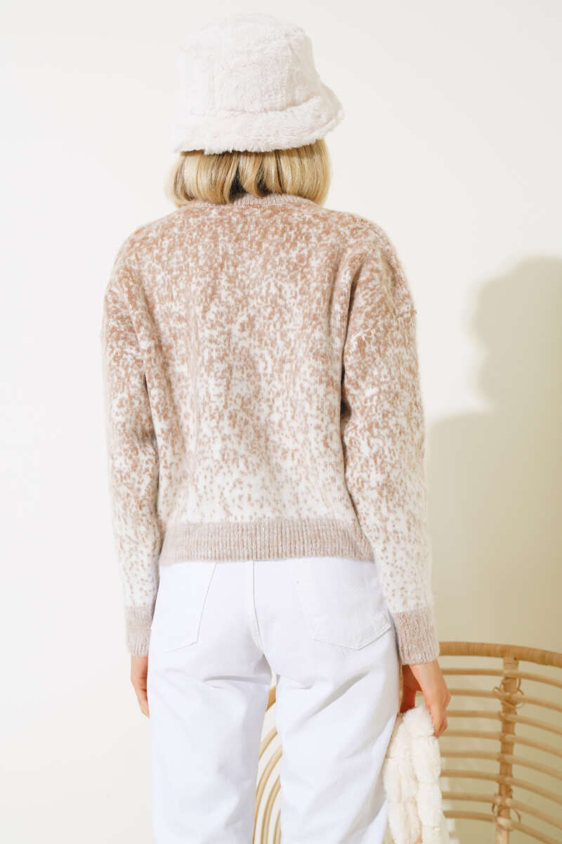 Desenli Uzun Kol Tül Bluz Acı Kahve