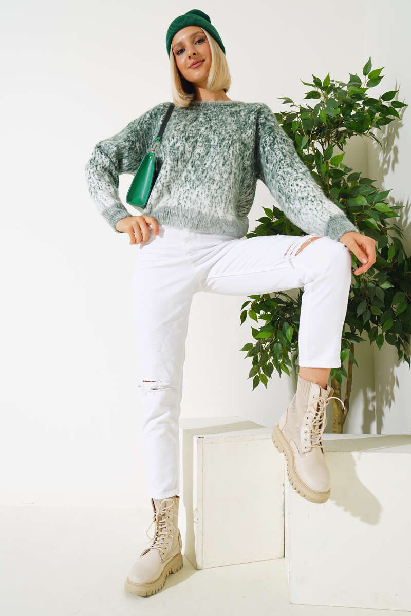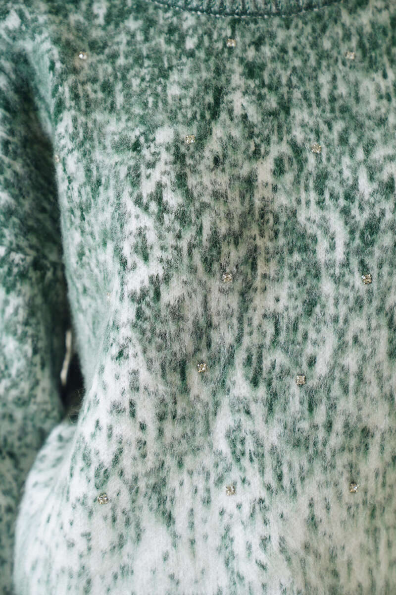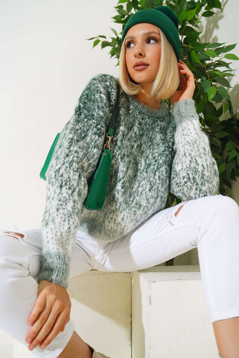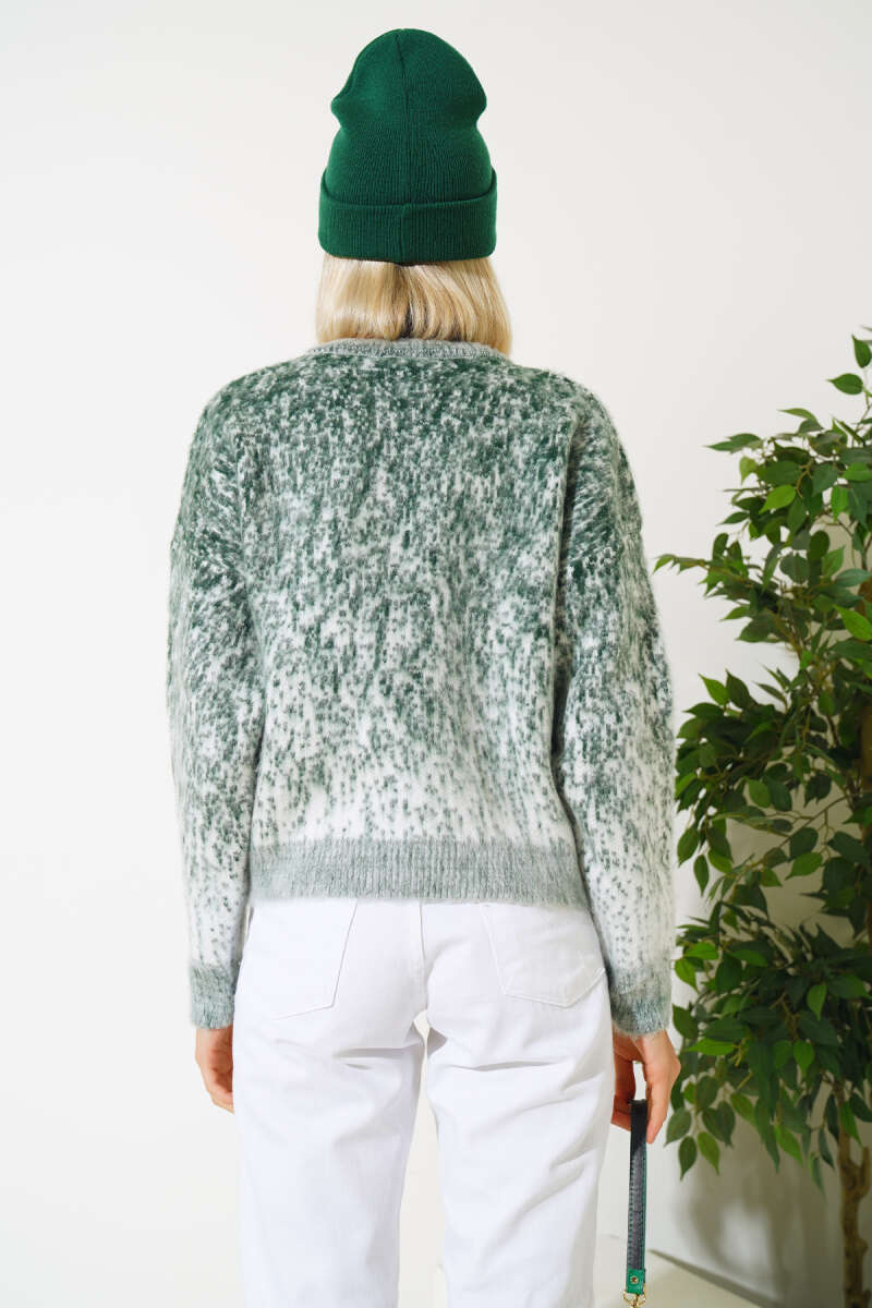 Desenli Gold Düğmeli Triko Hırka Yeşil