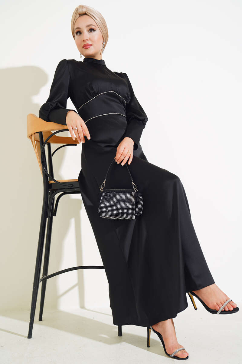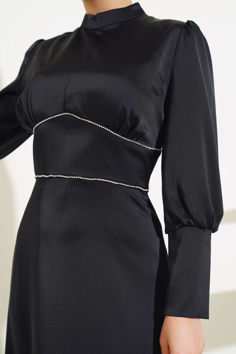 Bel Taşlı Pelerinli Abiye Elbise Siyah
