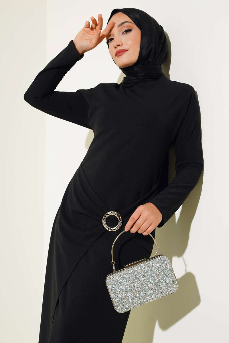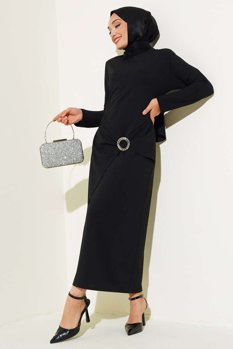 Loyşa İp Kuşaklı Duble Kol Elbise Siyah