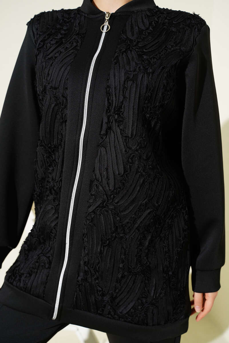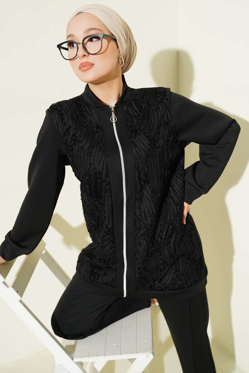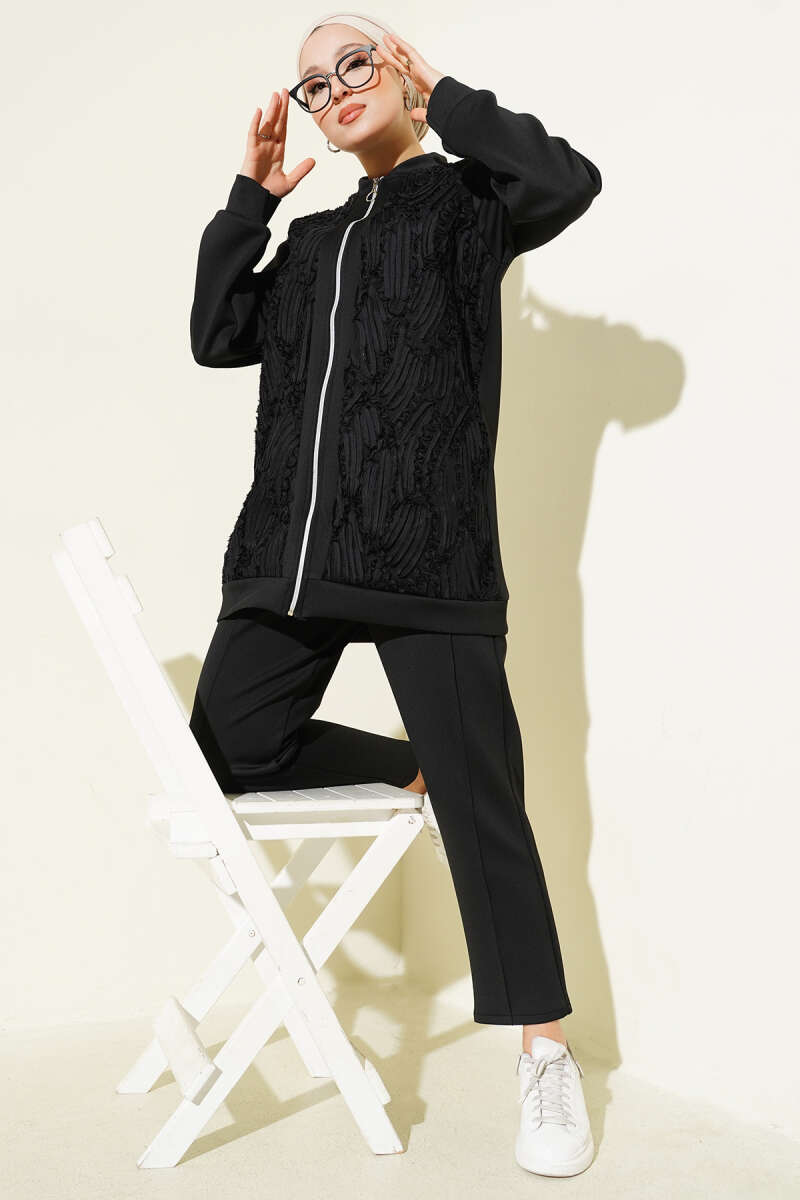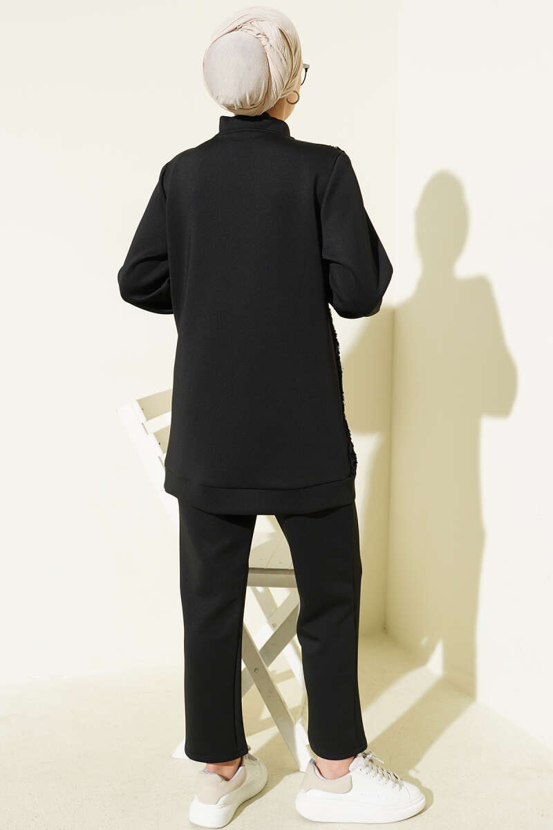 Kruvaze Yaka Ceket Etekli İkili Takım Siyah