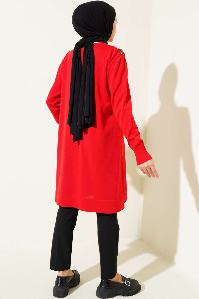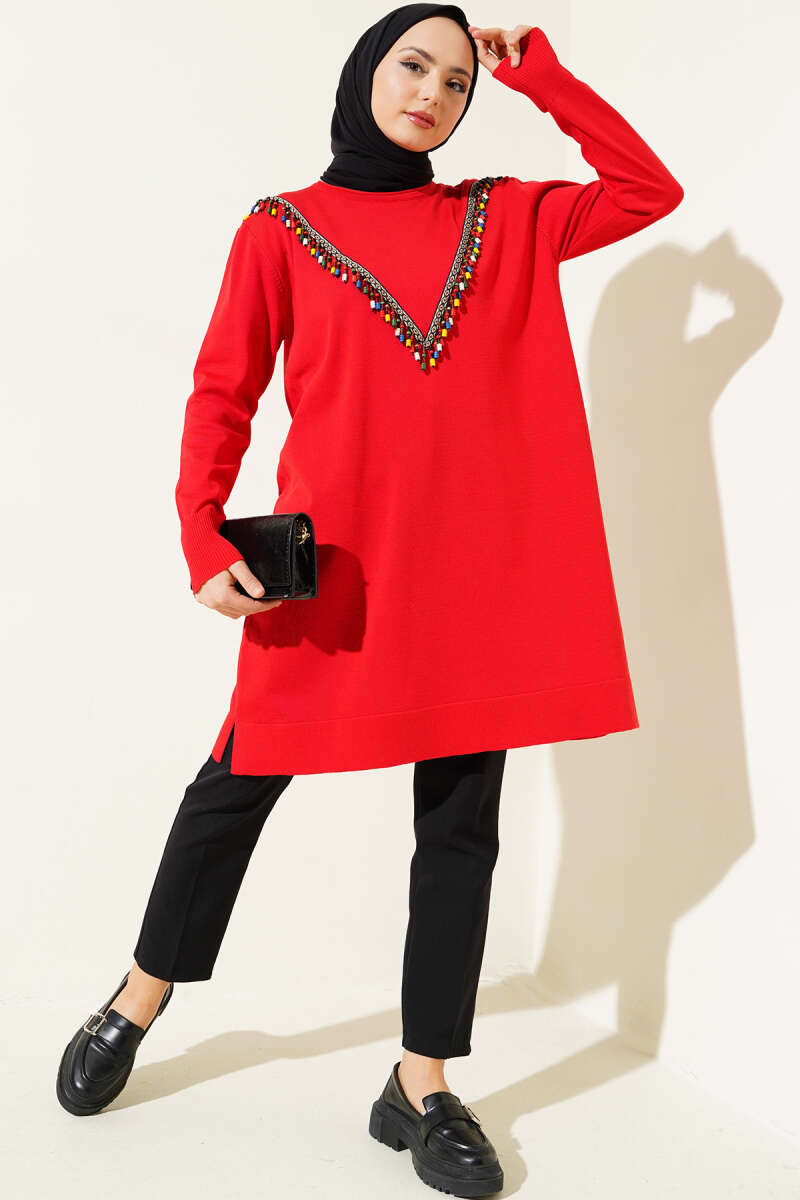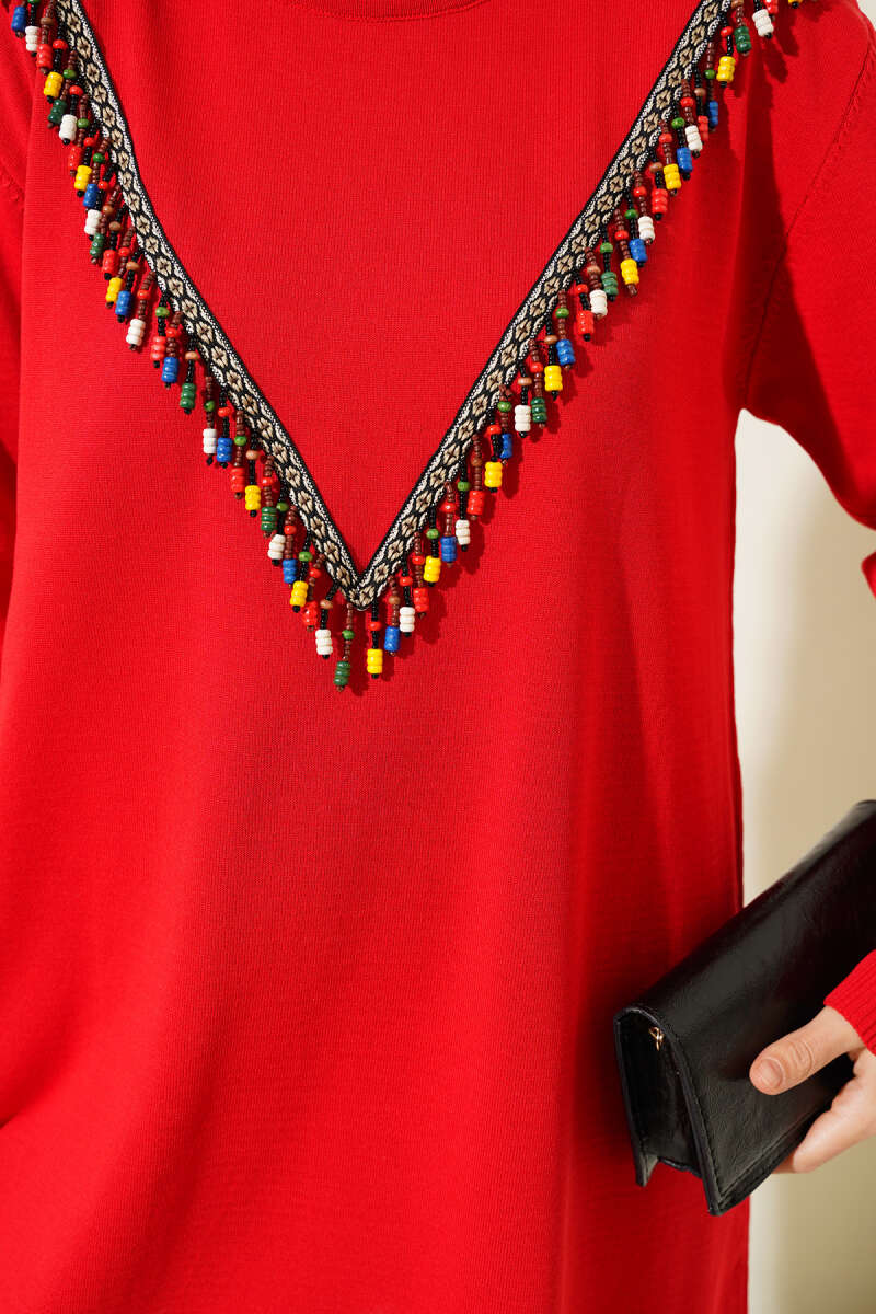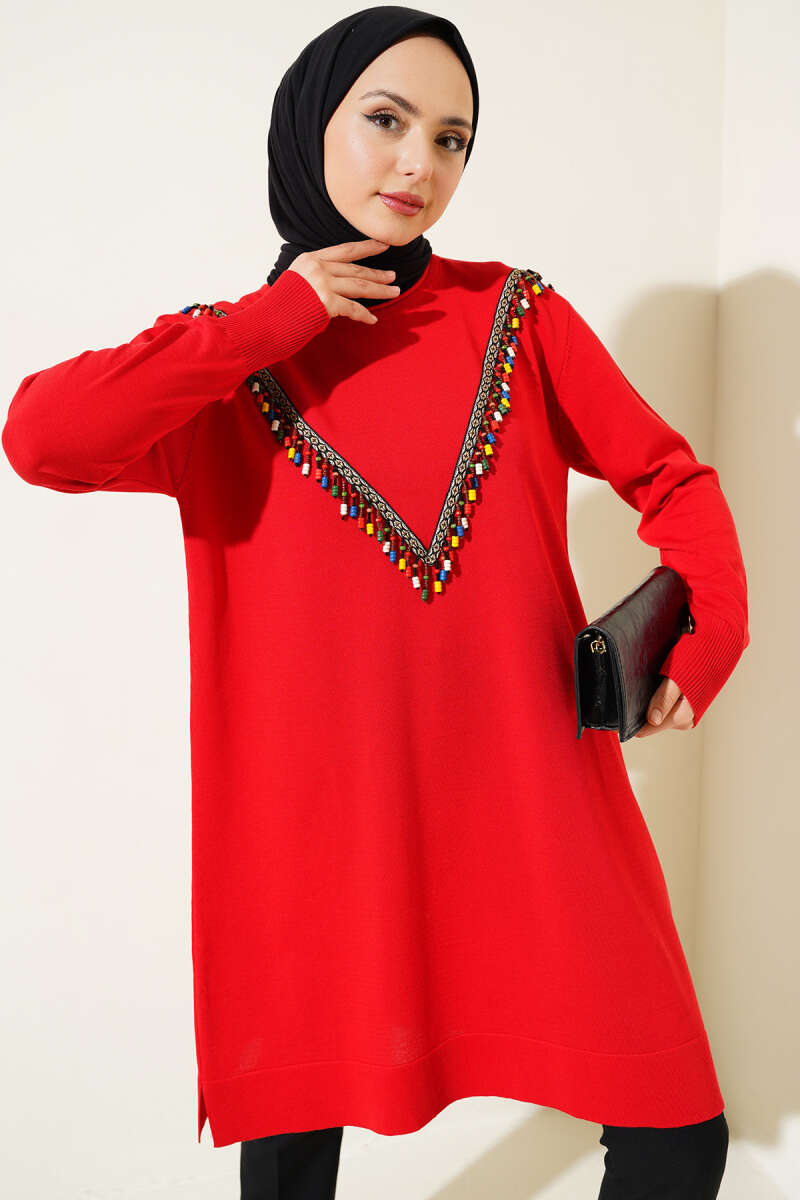 Gömlek Yaka Fularlı Triko Tunik Bordo