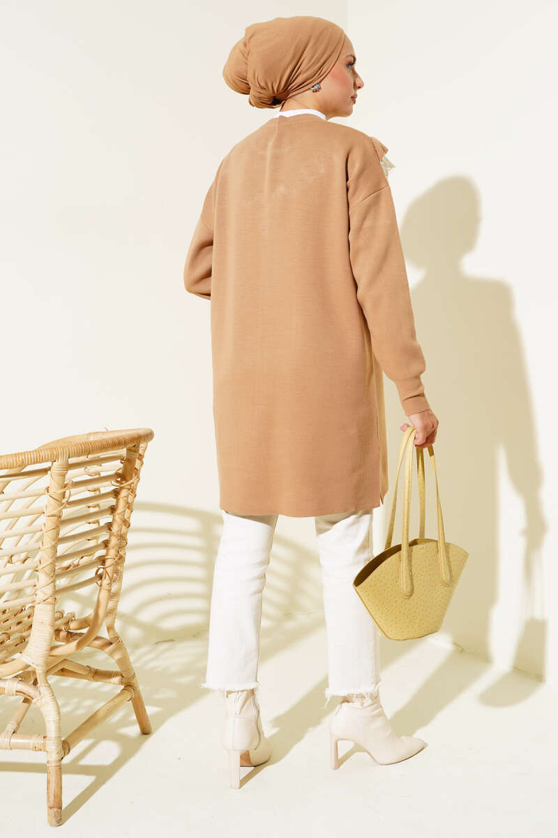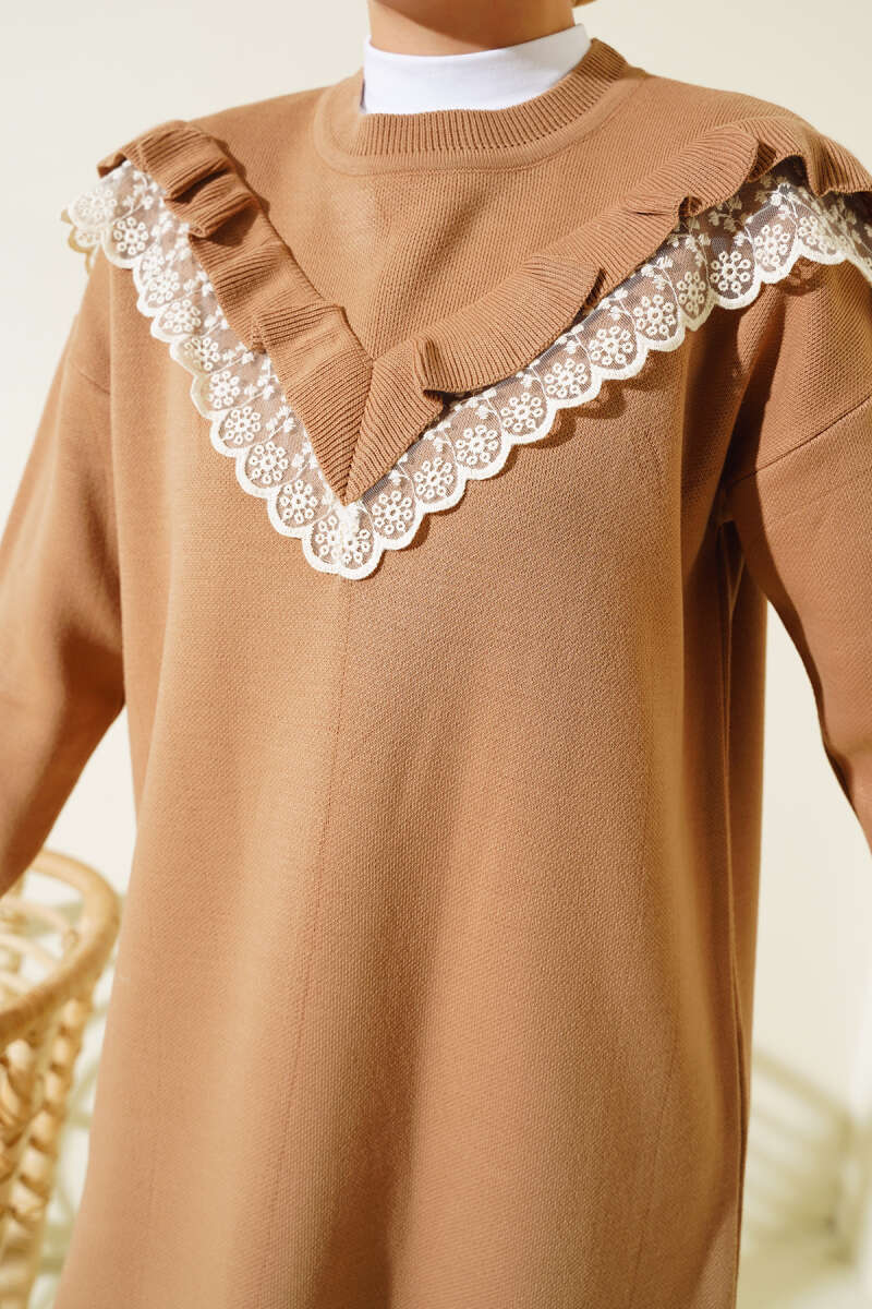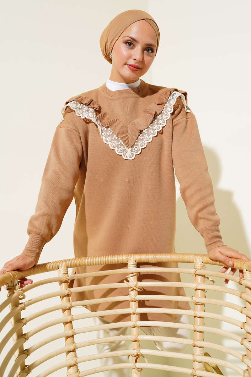 Yatay Çizgi Detaylı Basic Triko Tunik Vizon