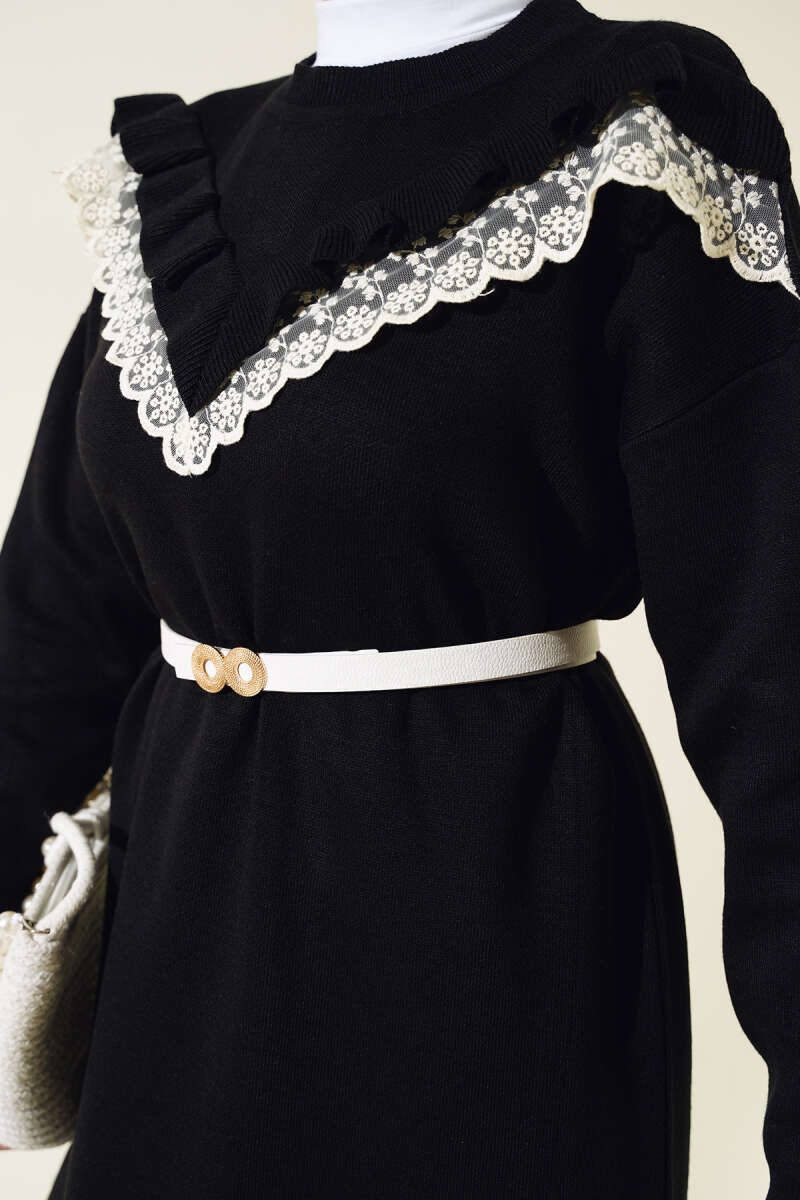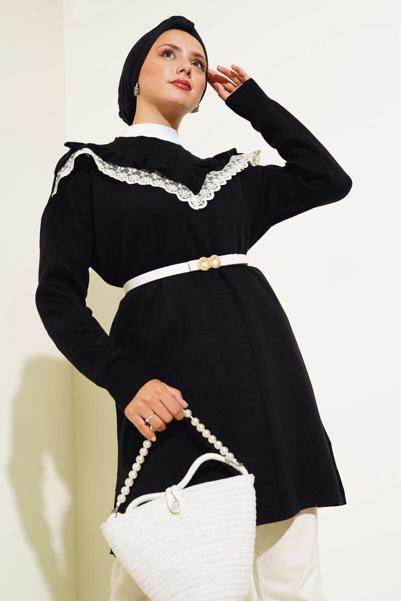 Ribana Görünümlü Triko Tunik Yağ Yeşili