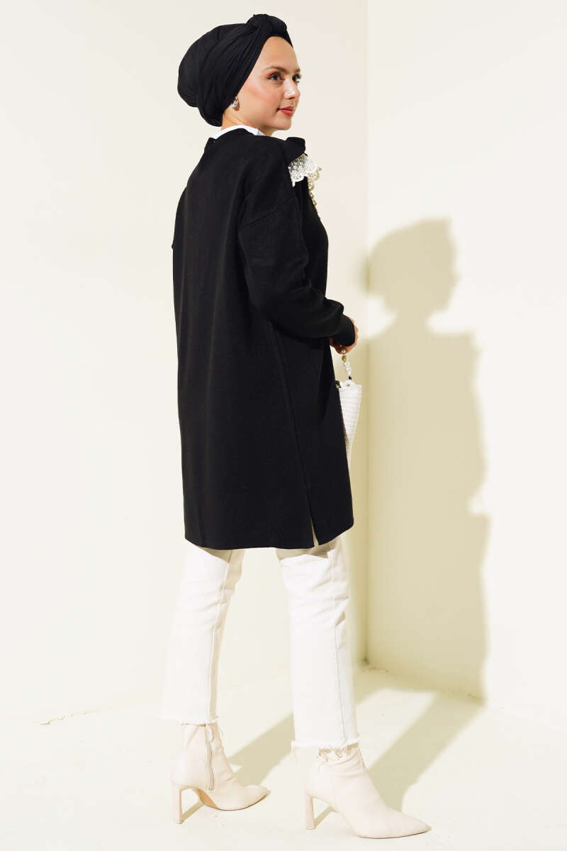 Klasik Yakalı Desenli Pers Mavisi Tunik