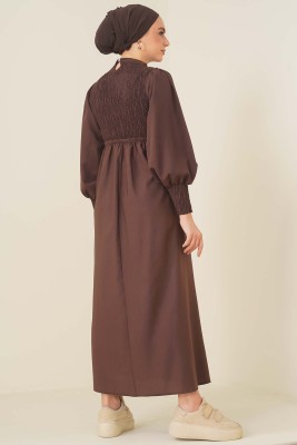 Önü ve Kol Ucu Gipeli Elbise Kahve