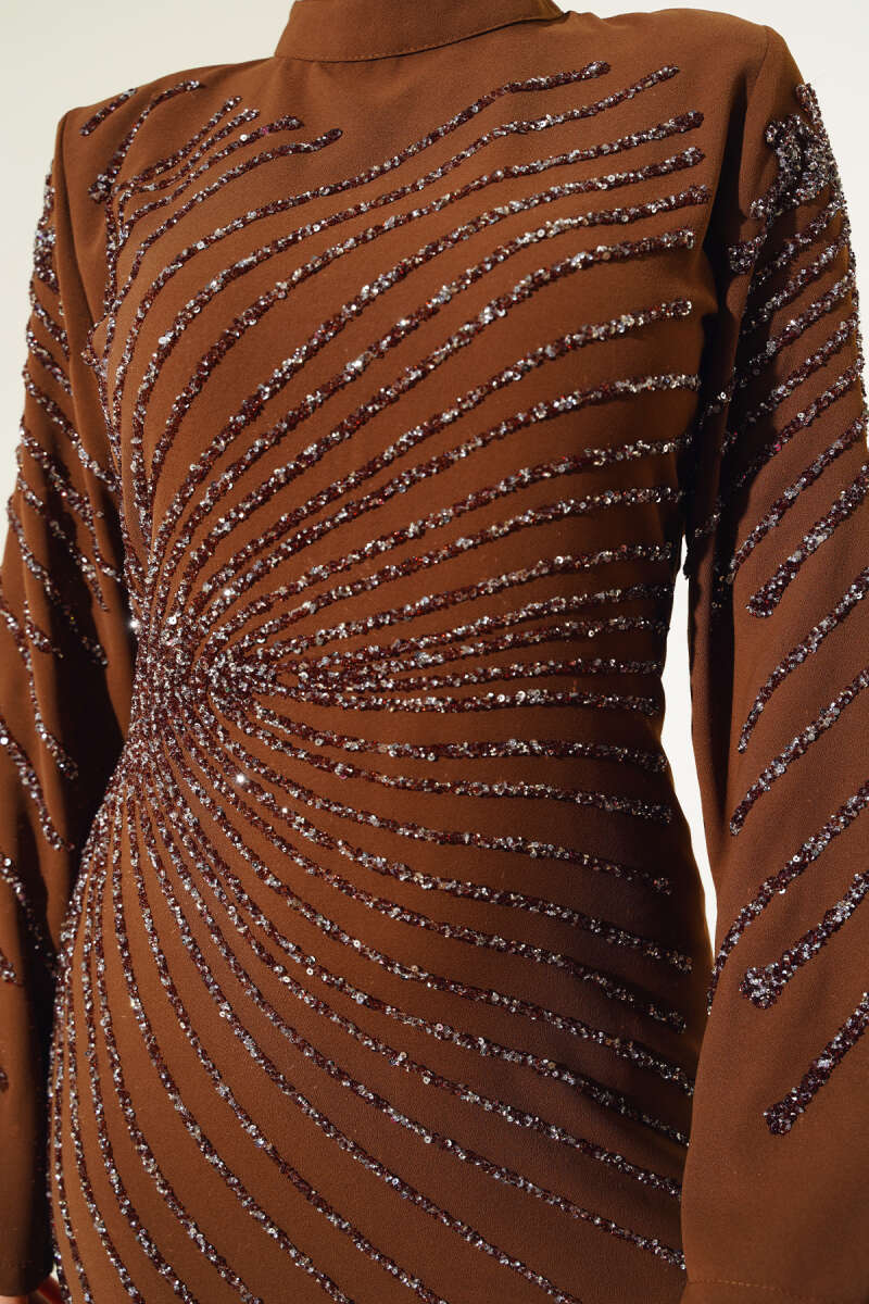 Pelerin Detaylı Pileli Triko Elbise Kahve