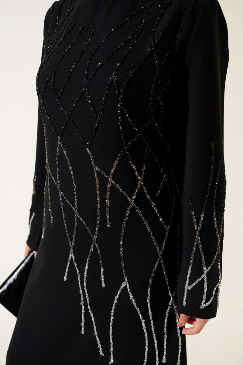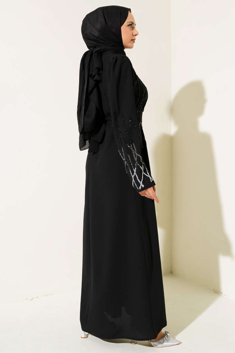 Önü ve Kolu Taşlı Büyük Beden Elbise Zümrüt