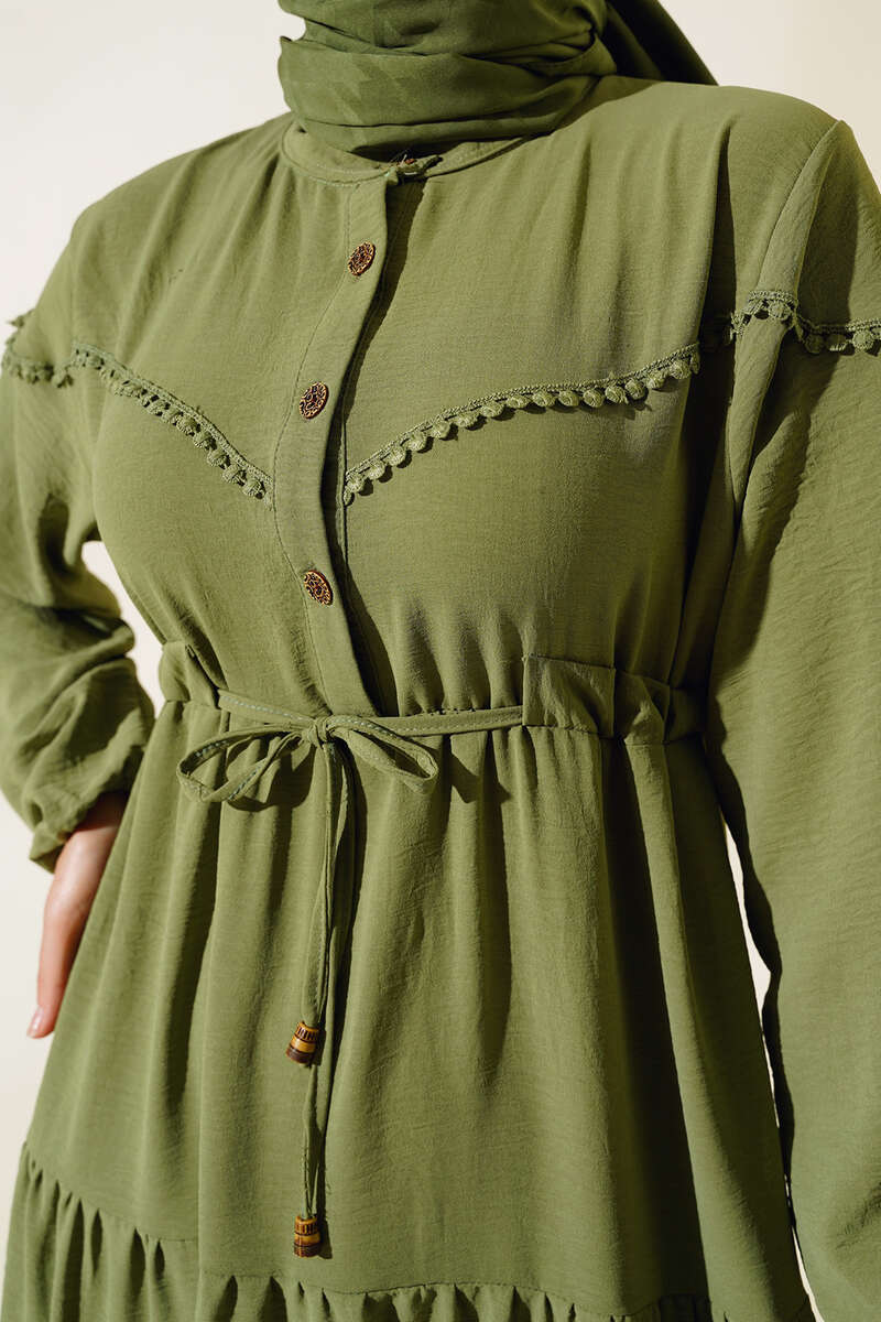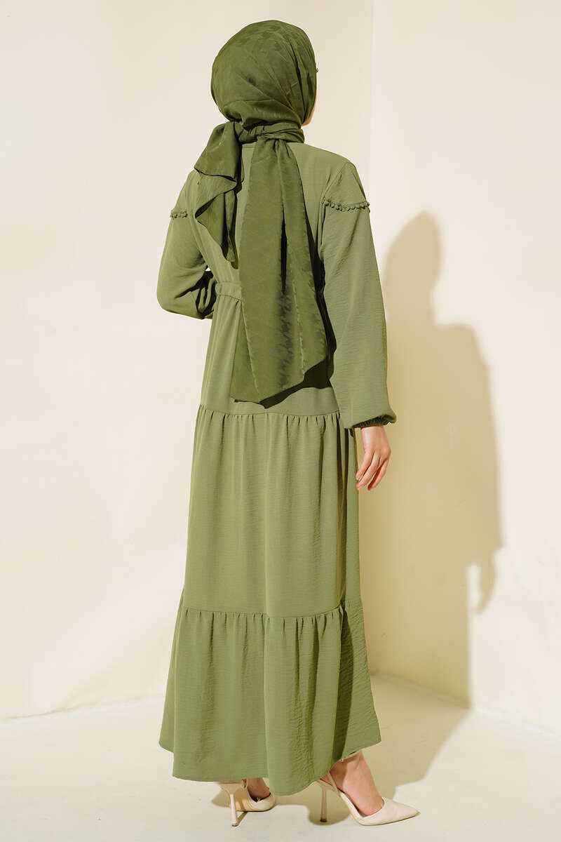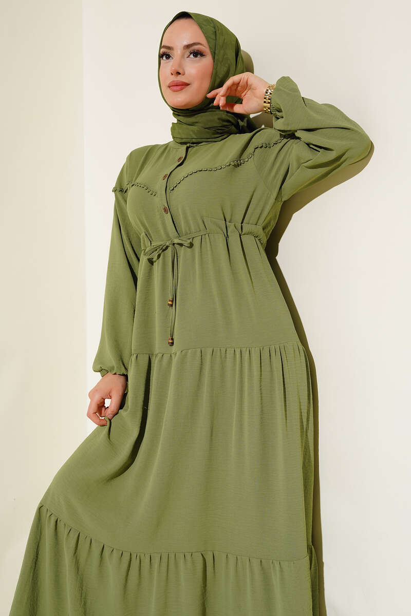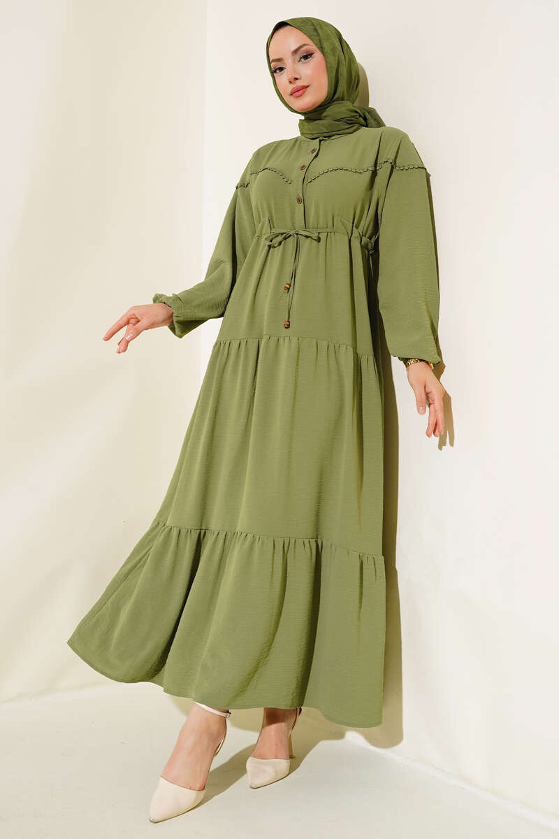 Önü Yarım Düğmeli Kat Kat Elbise Çağla Yeşili