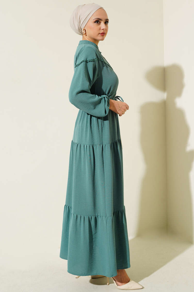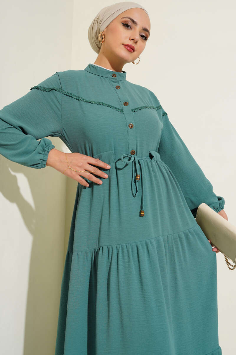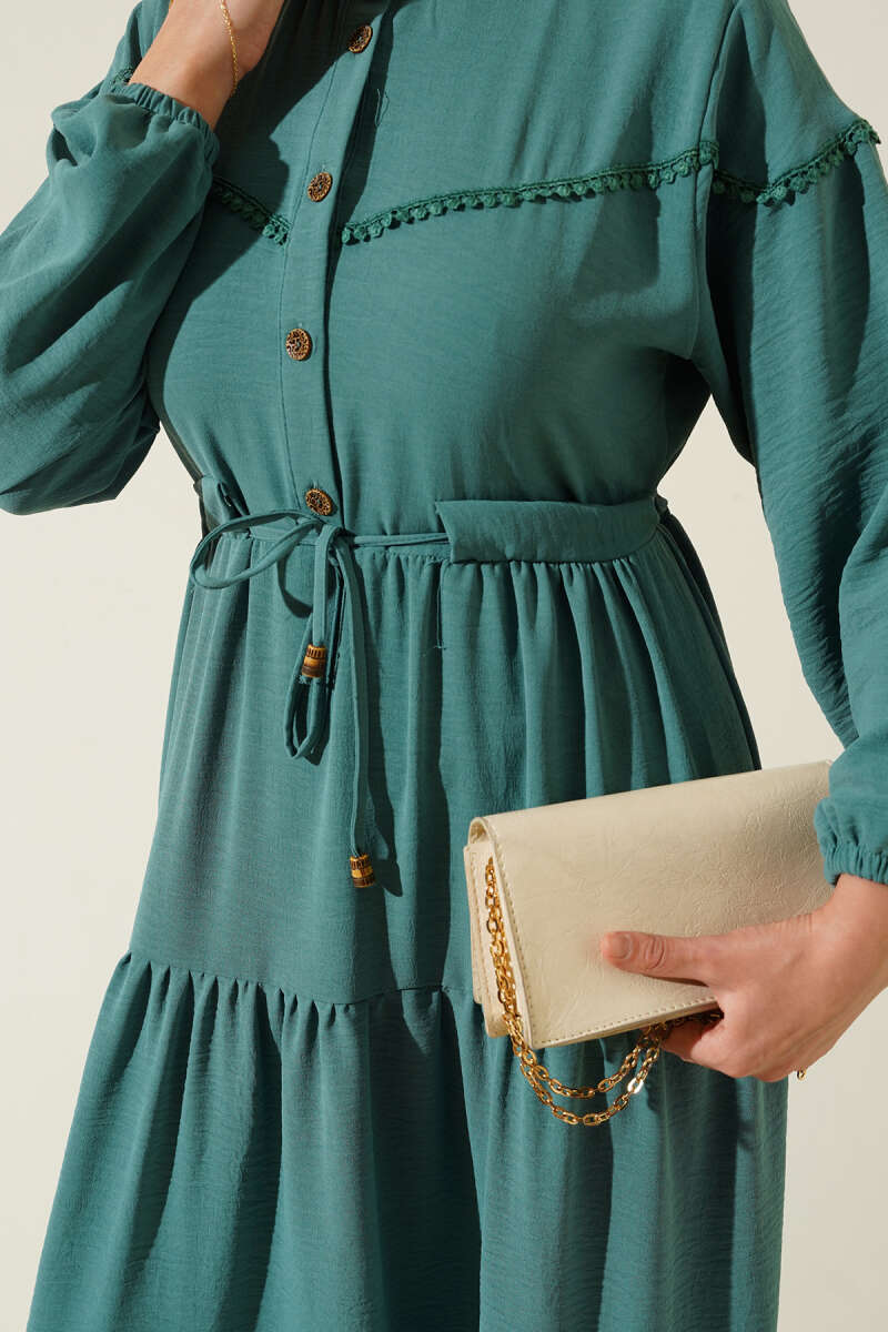 Kuşaklı Dik Fitilli Kaşe Elbise Haki