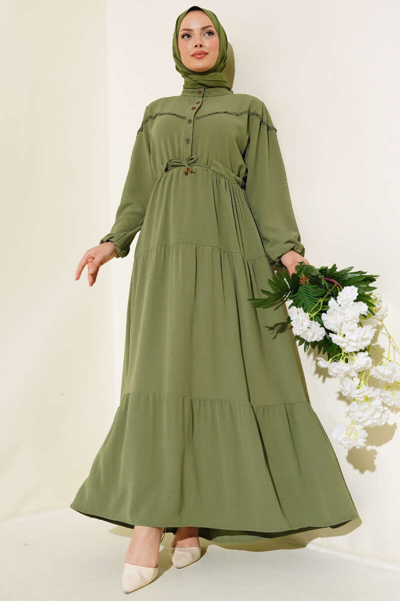 Önü Yarım Düğmeli Kat Kat Elbise Nefti