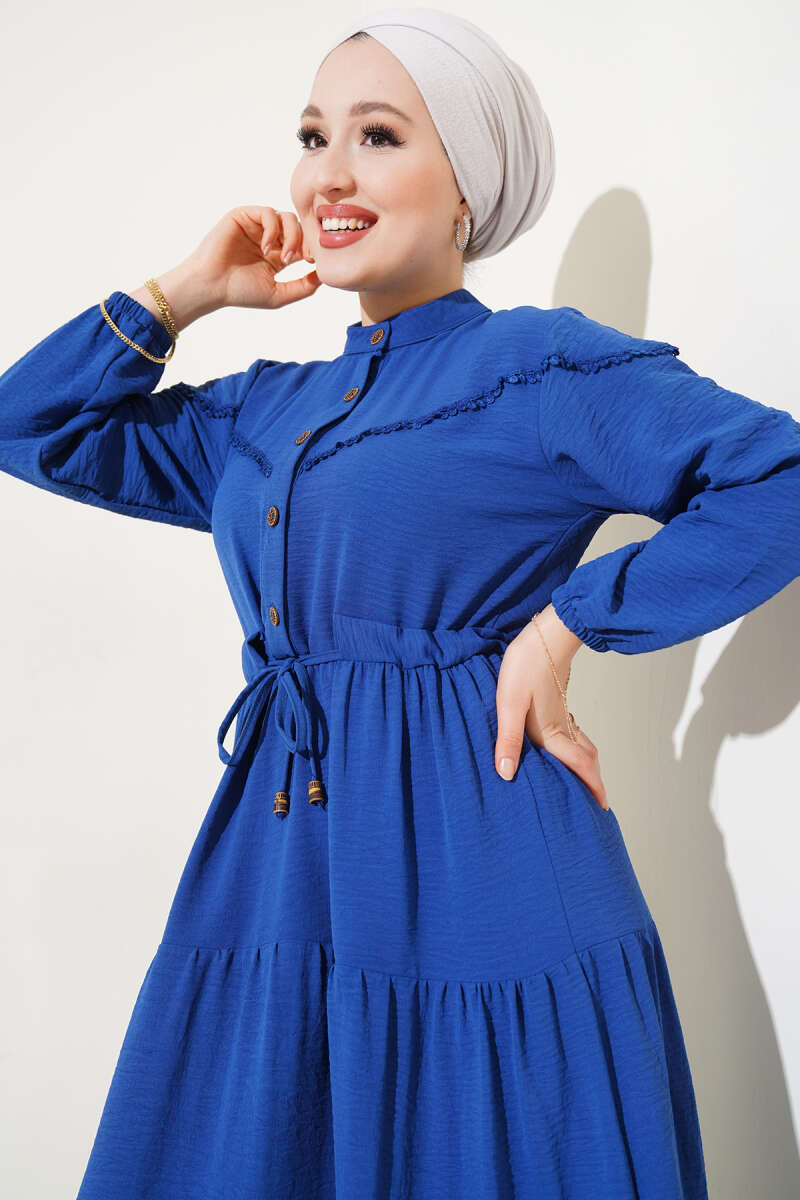 Kuşaklı Dik Fitilli Kaşe Elbise Lacivert