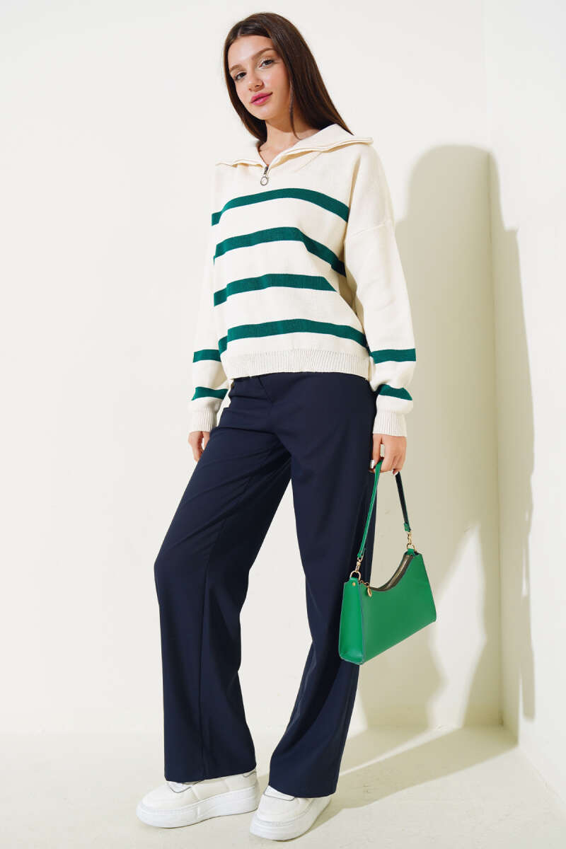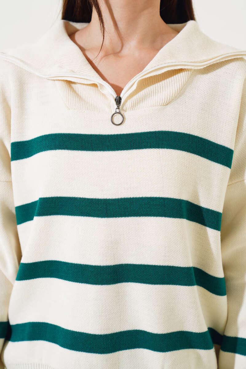 Bisiklet Yaka Sakal Detaylı Kazak Siyah