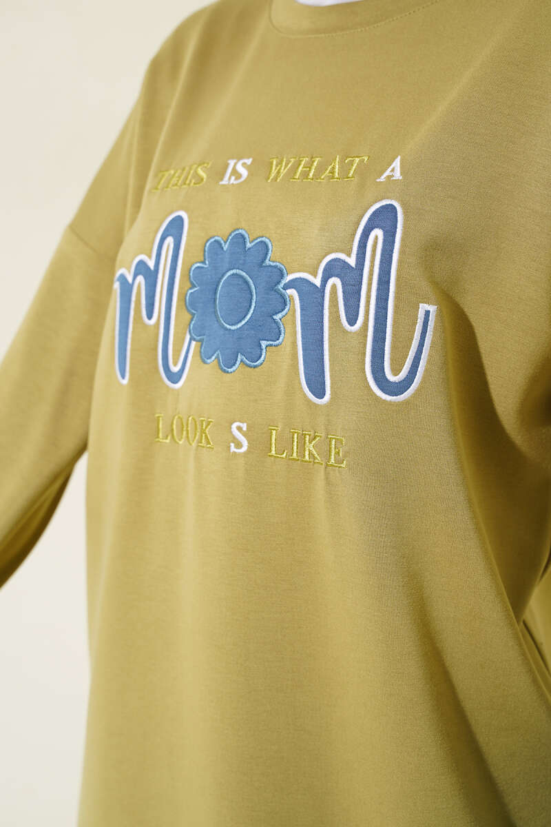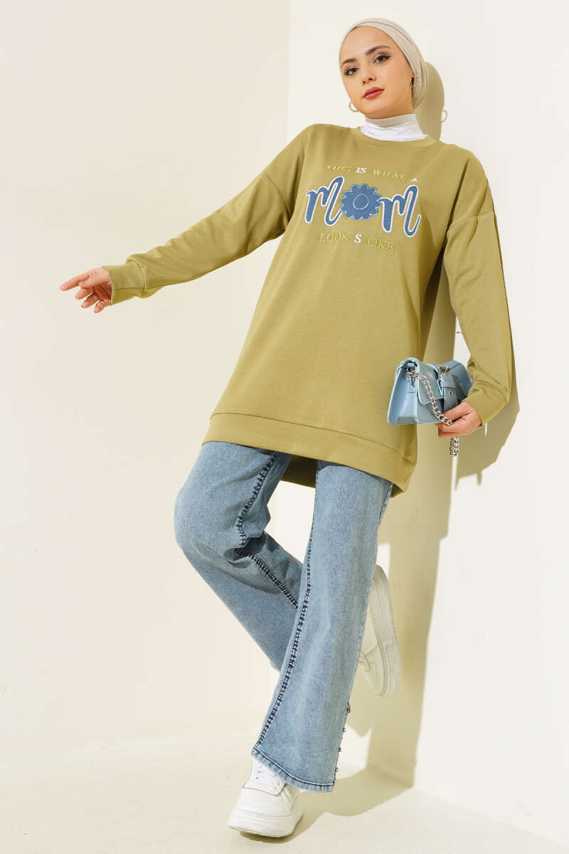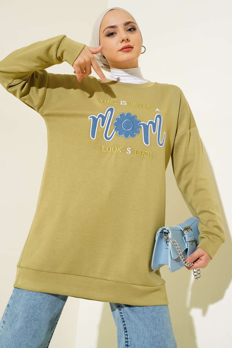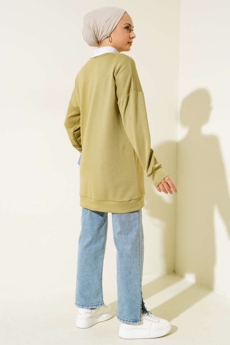 Çiçek Detaylı Çizgili Tunik Zümrüt