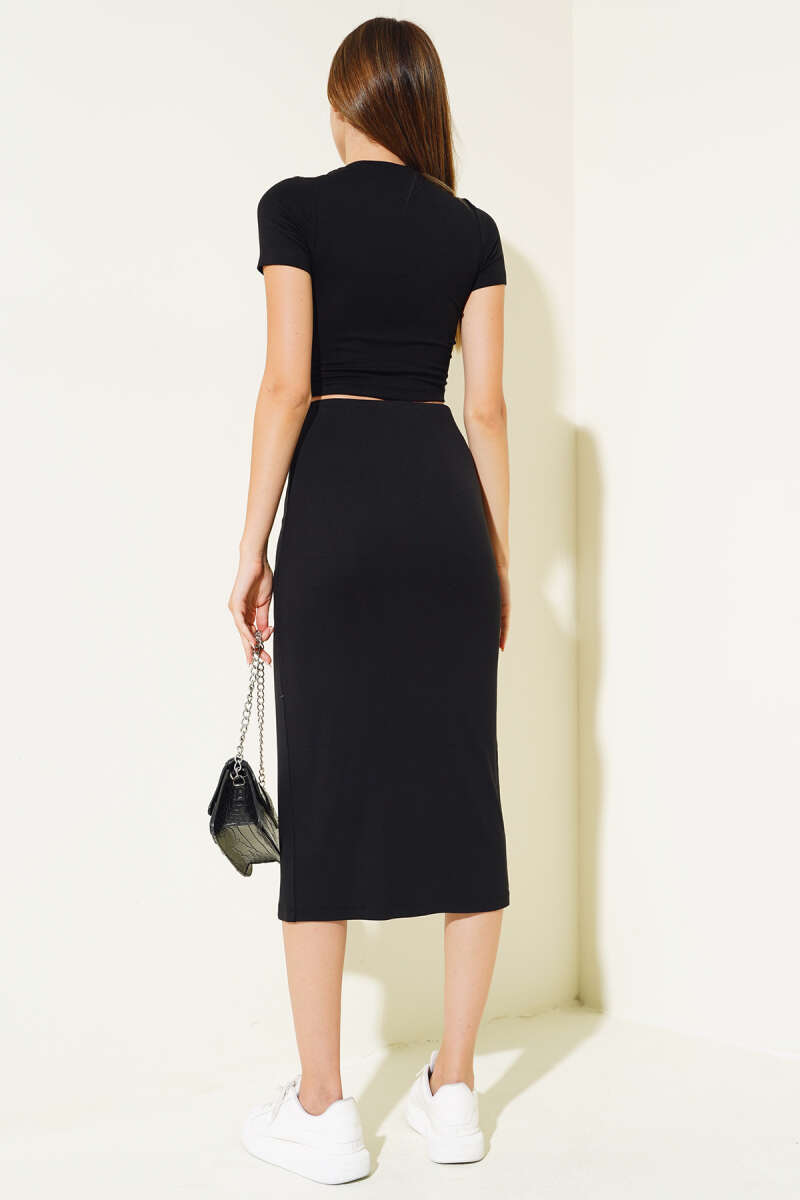 Önü Yırtmaçlı Etekli İkili Takım Siyah