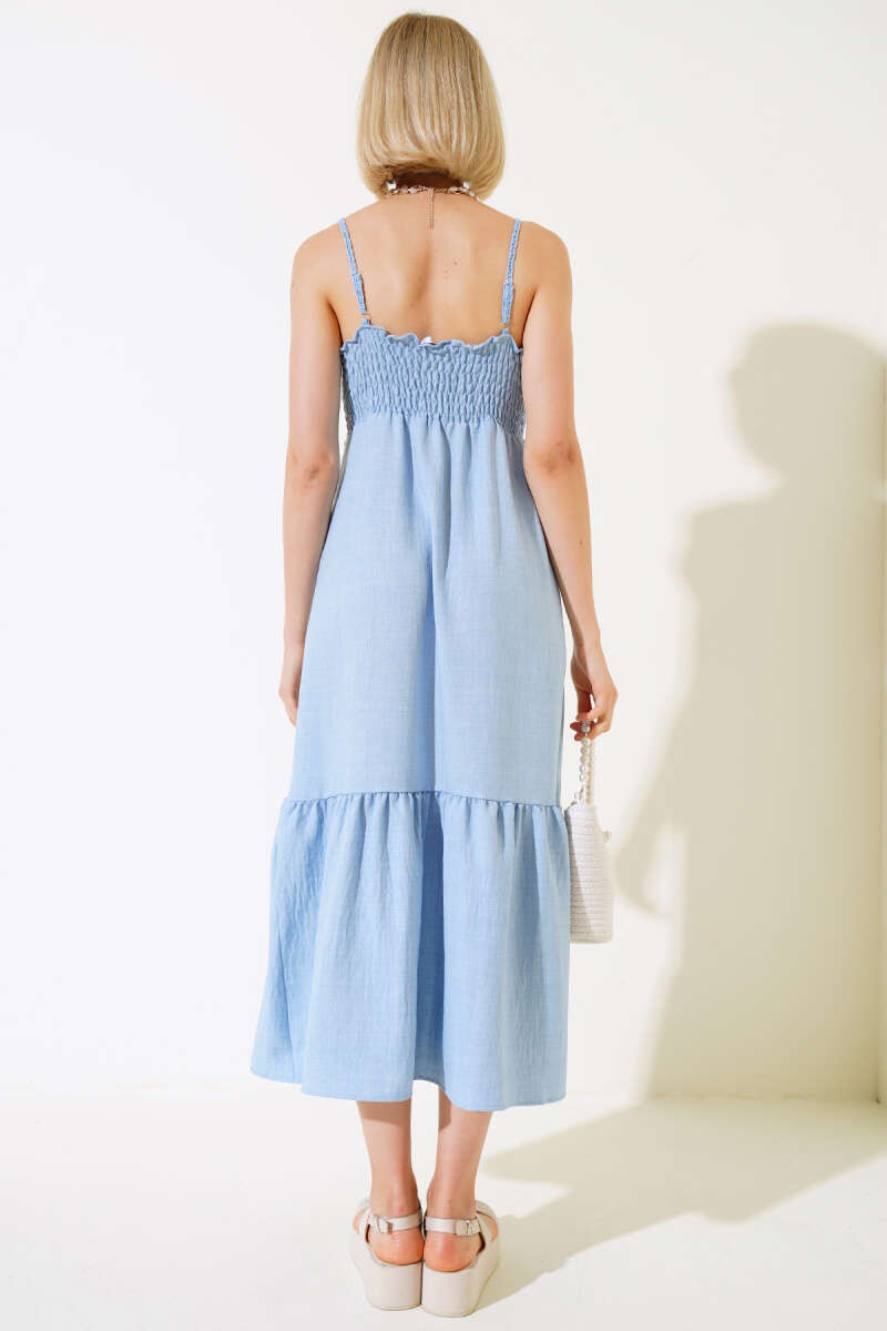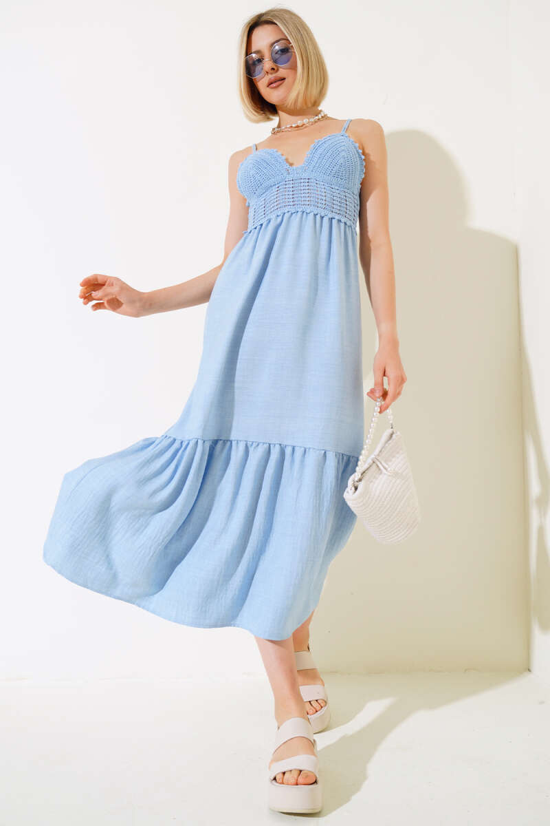 Örgü Askılı Elbise Mavi