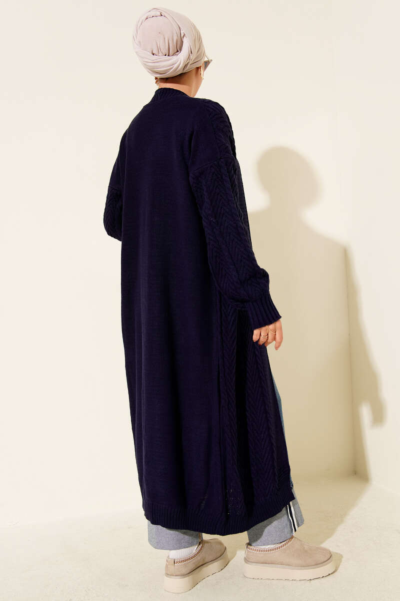 Örgü Büzgülü Uzun Triko Hırka Lacivert