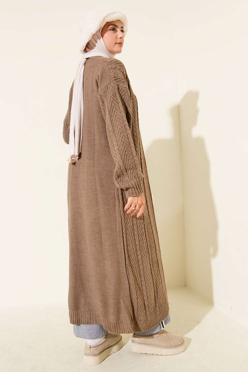 Örgü Büzgülü Uzun Triko Hırka Kahve
