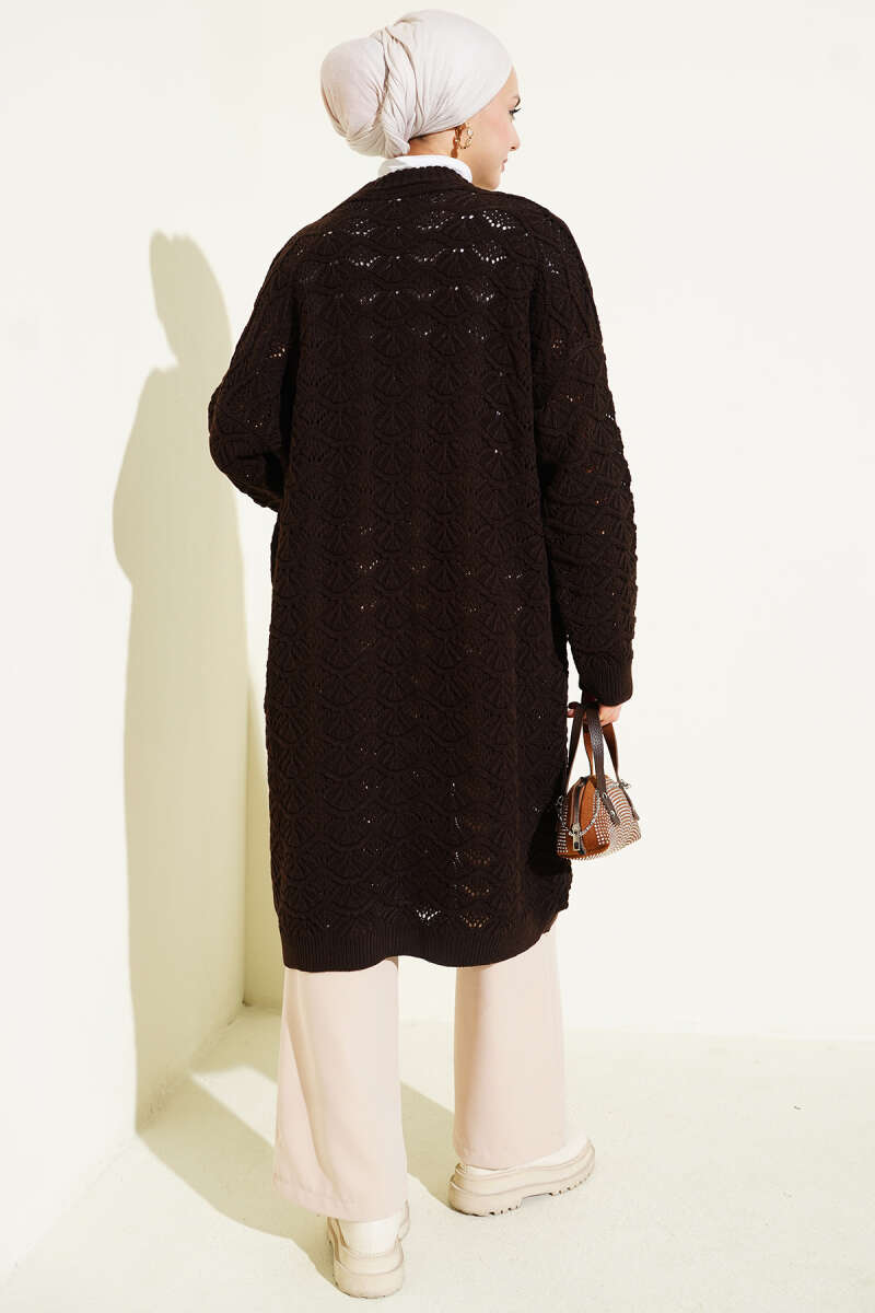 Örgü Desen Detaylı Triko Hırka Acı Kahve