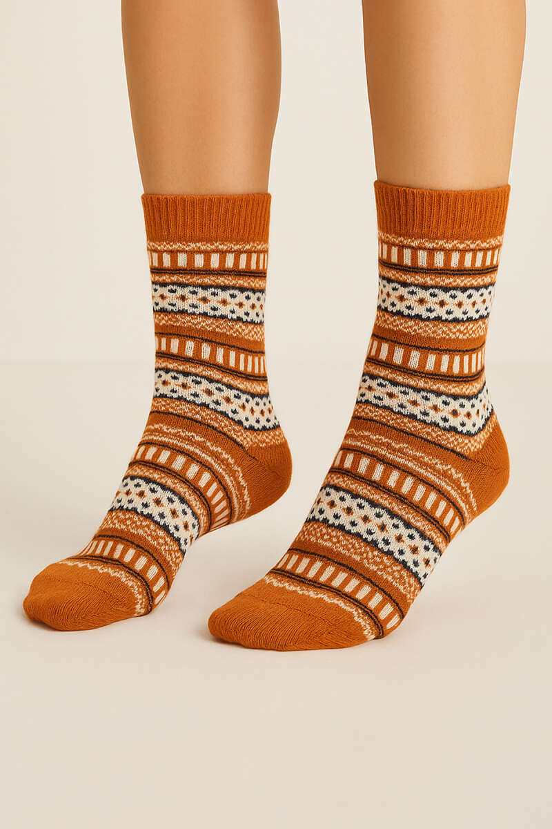 Örgü Detaylı Kadın Soket Çorap Oranj