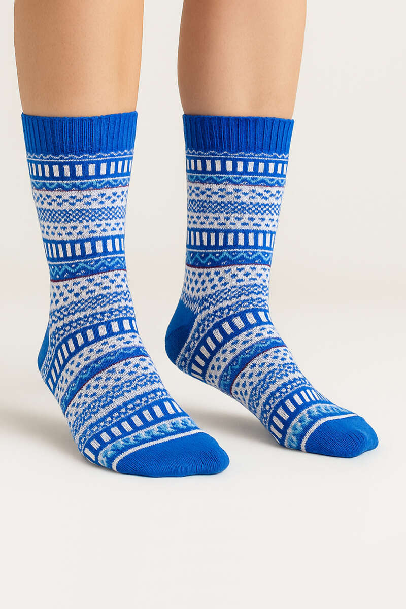 Örgü Detaylı Kadın Soket Çorap Fusya