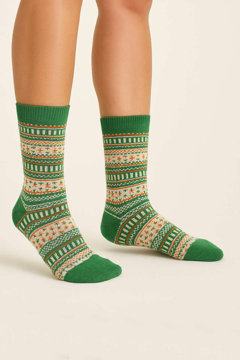 Örgü Detaylı Kadın Soket Çorap Yeşil