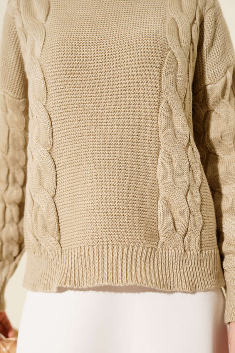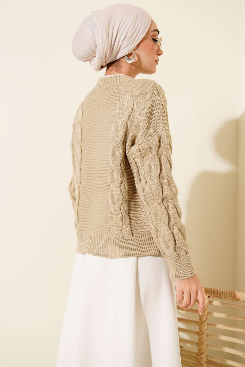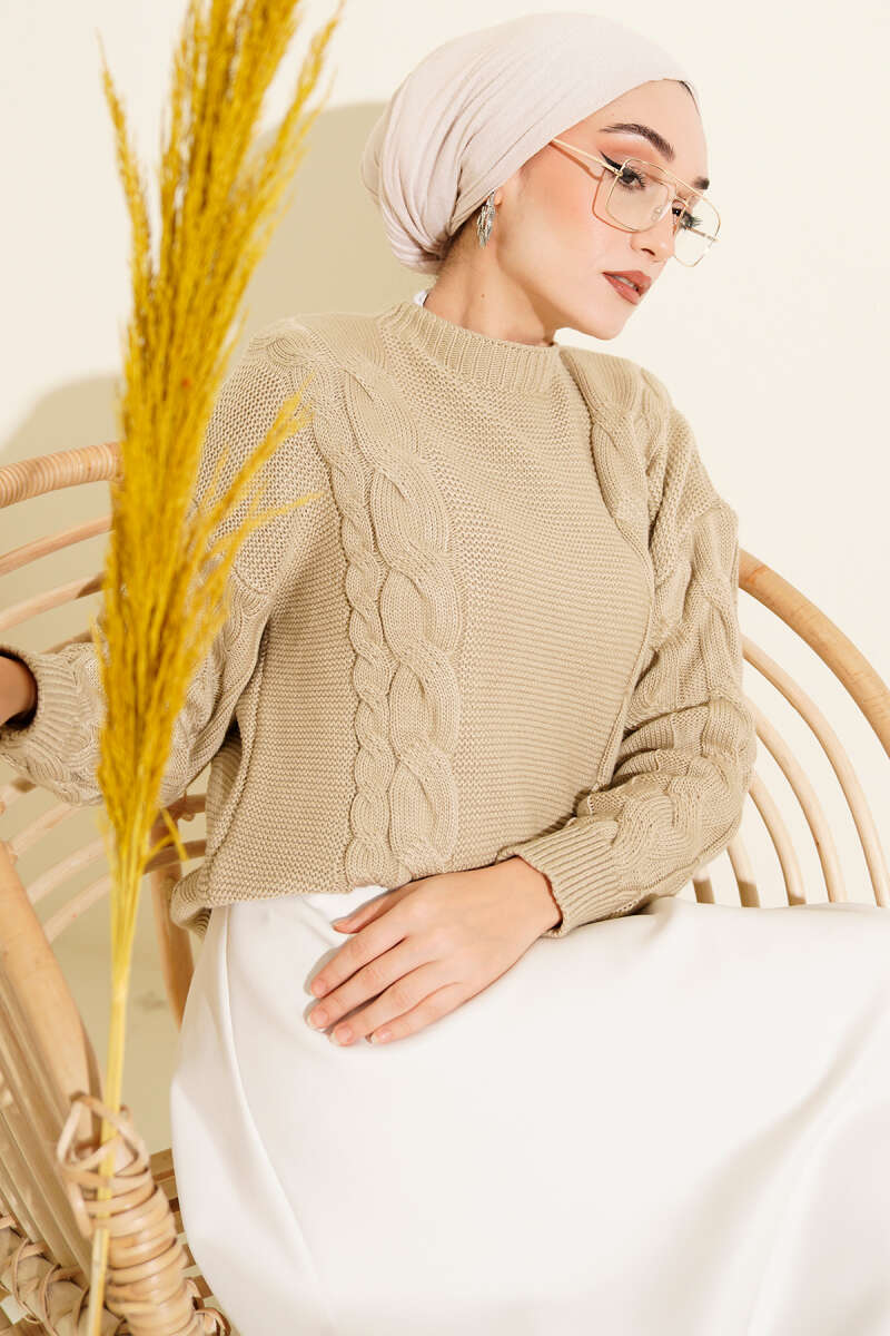 Zikzak Desen Ajurlu Triko Kazak Kahve