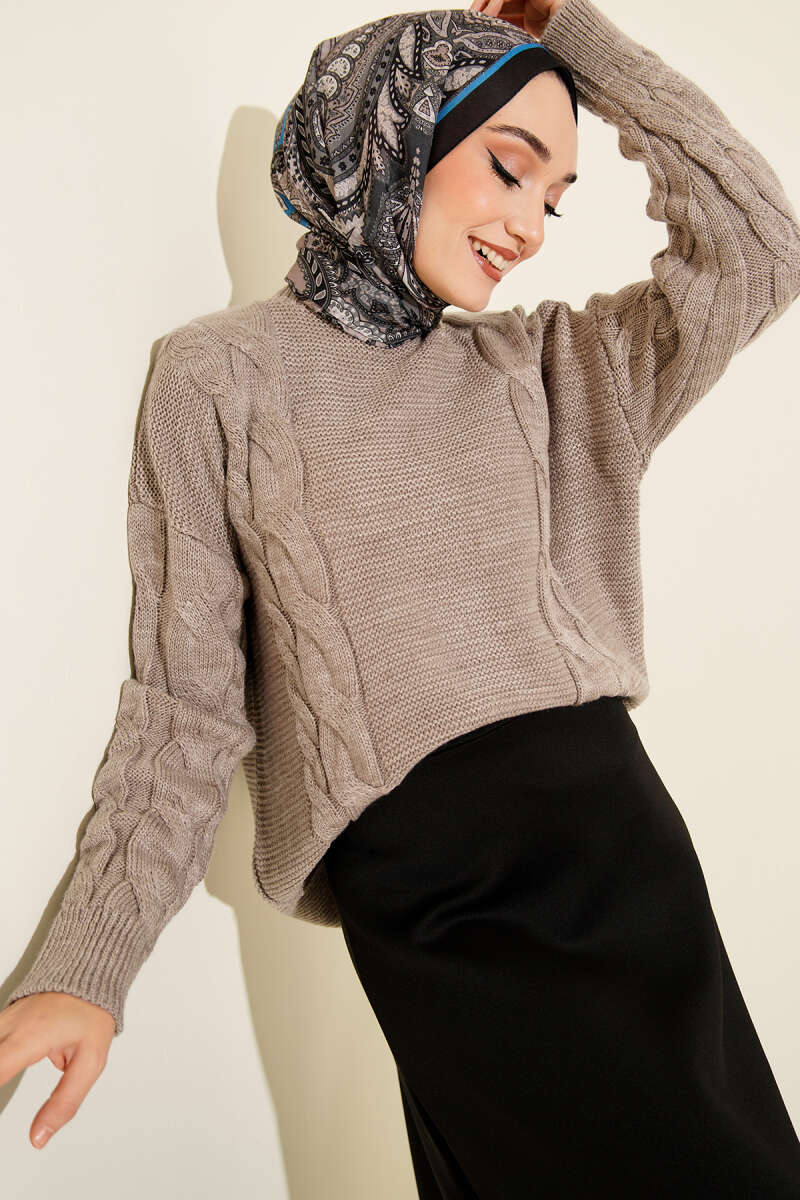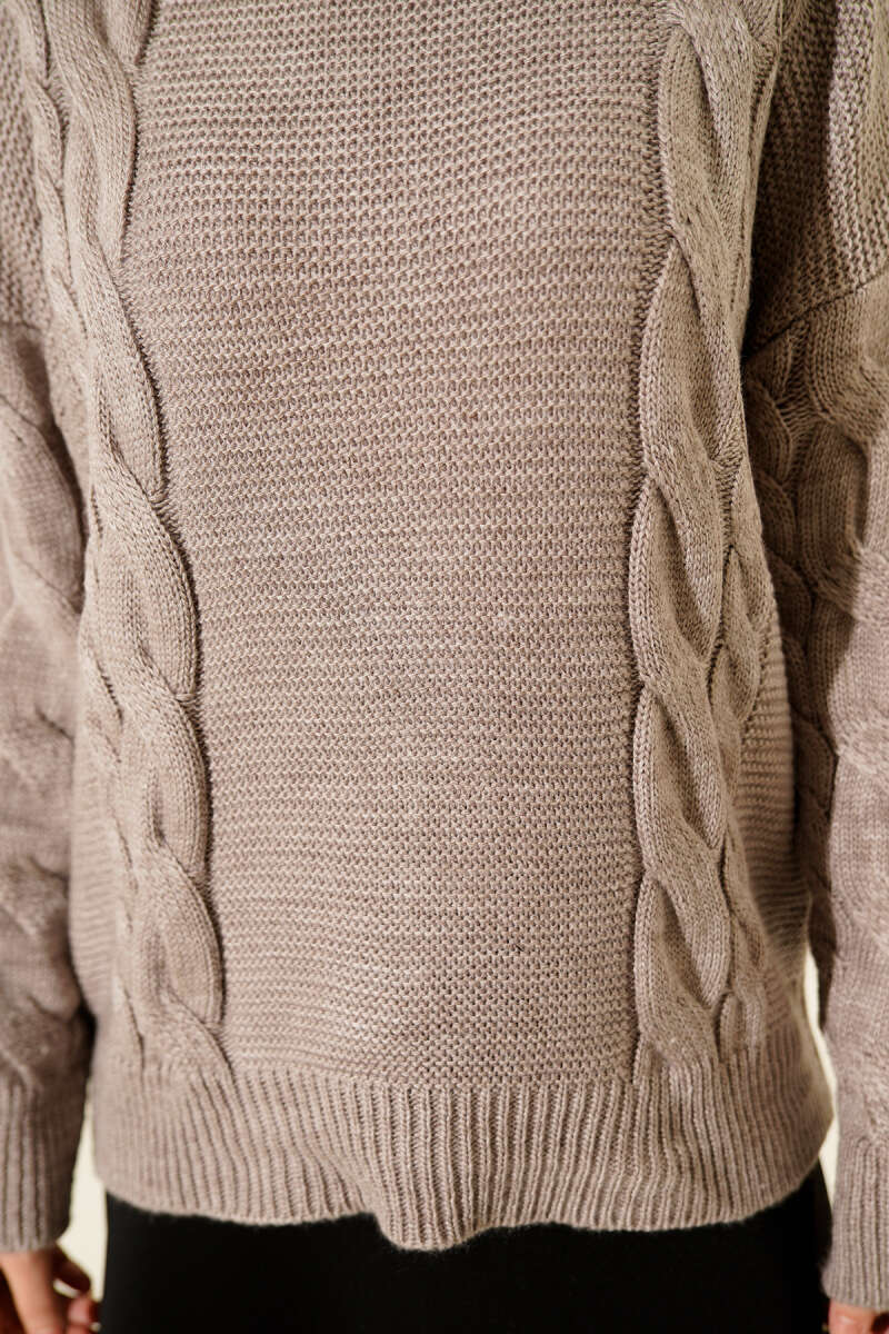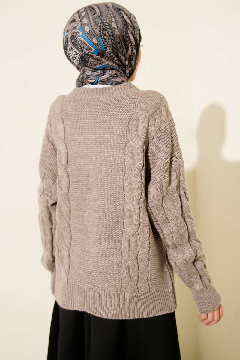 Zikzak Desen Ajurlu Triko Kazak Kahve