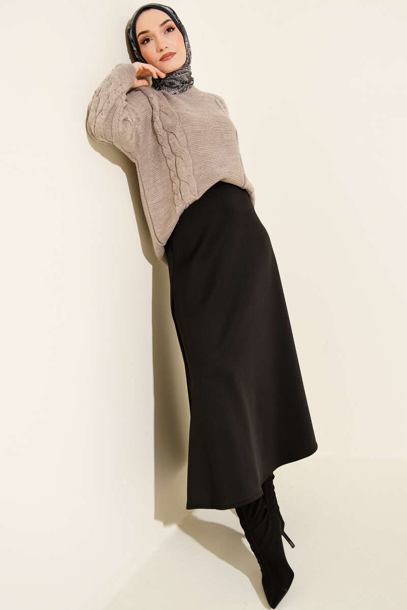Zikzak Desen Ajurlu Triko Kazak Siyah
