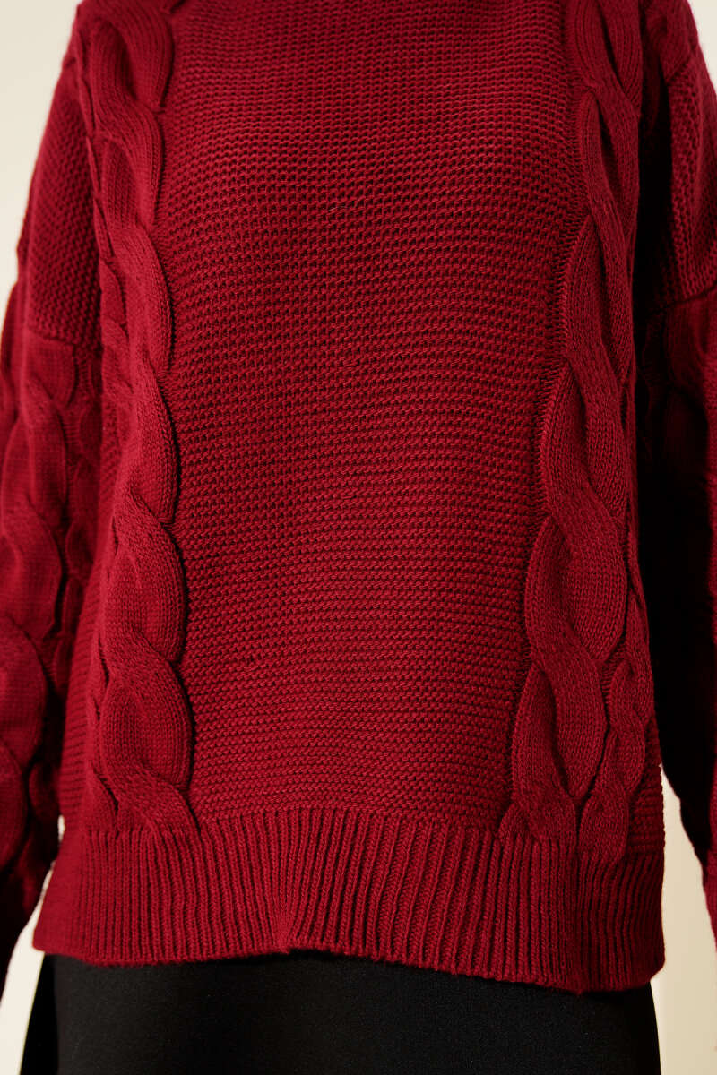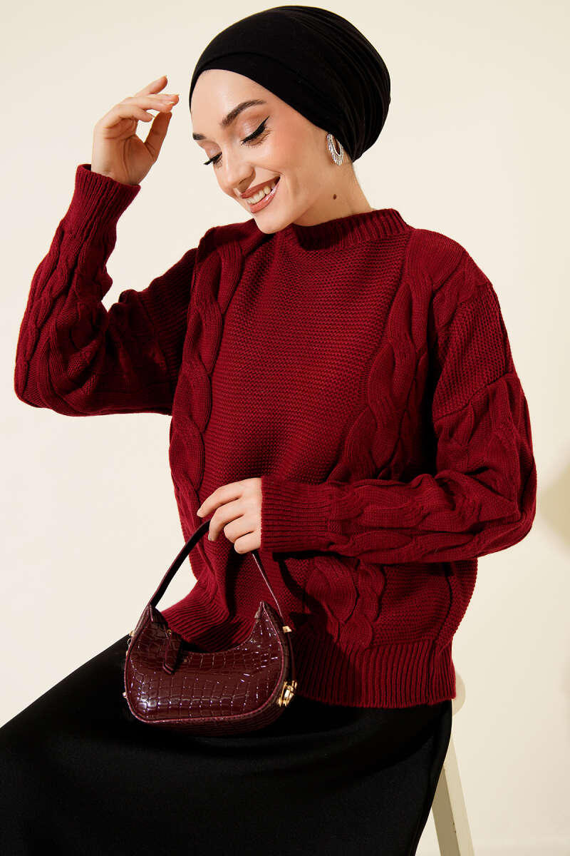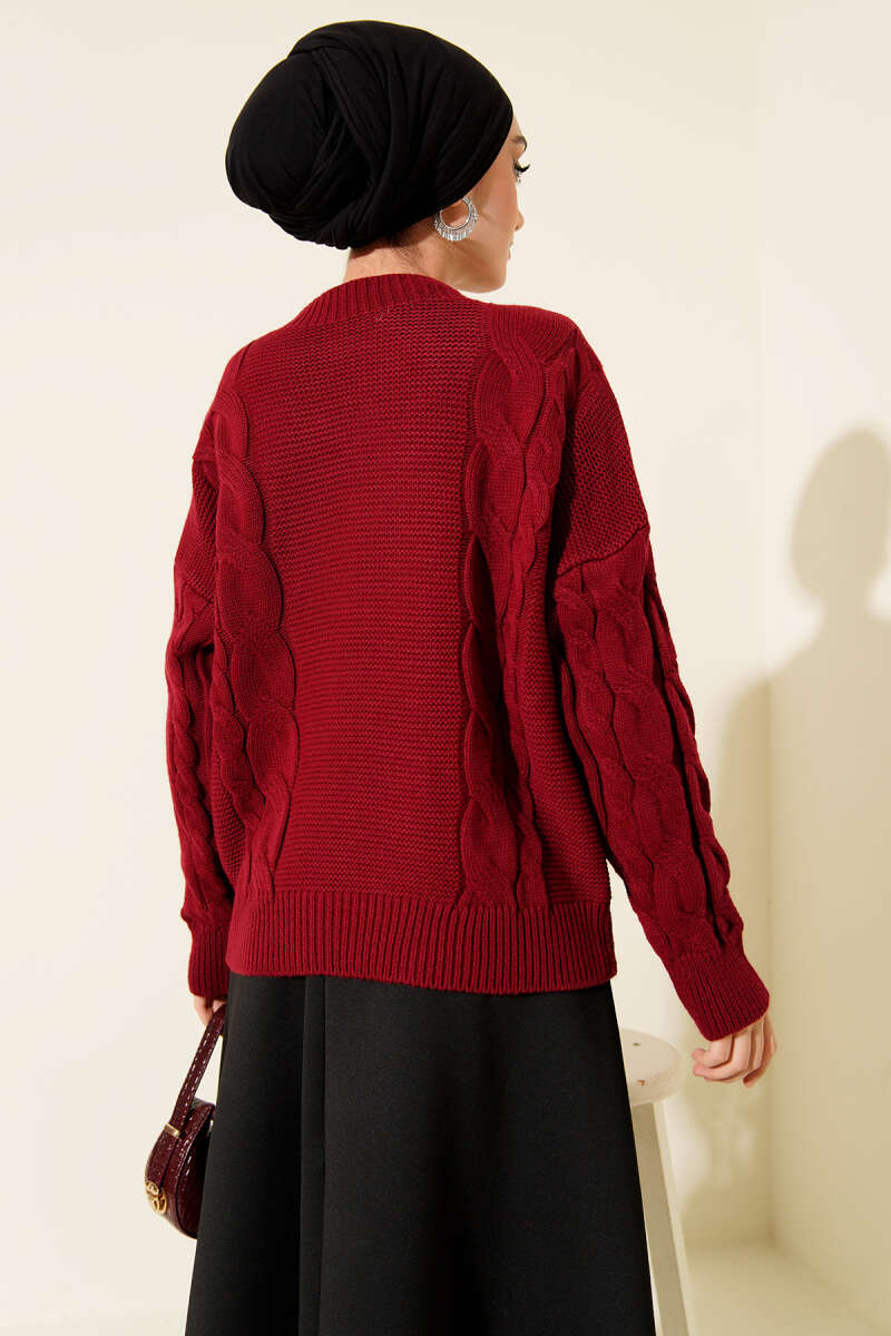 Zikzak Desen Ajurlu Triko Kazak Kahve
