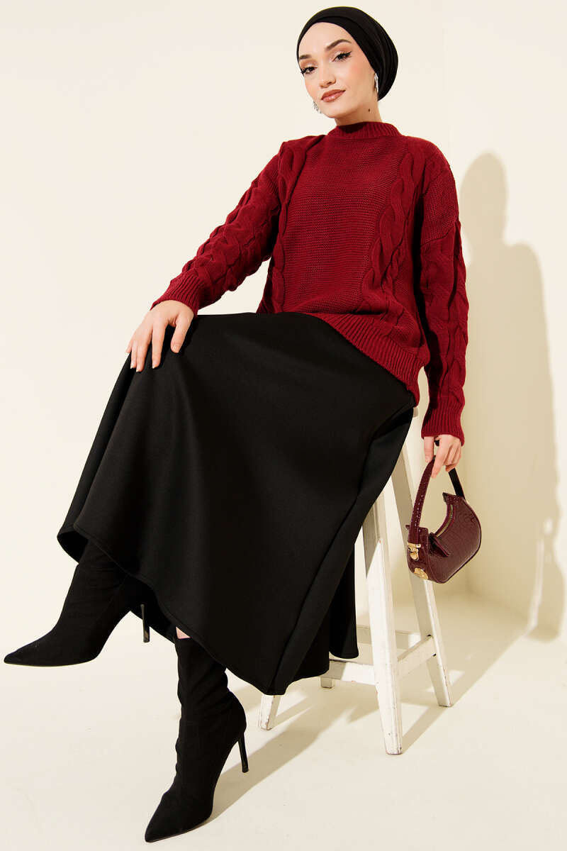 Zikzak Desen Ajurlu Triko Kazak Siyah