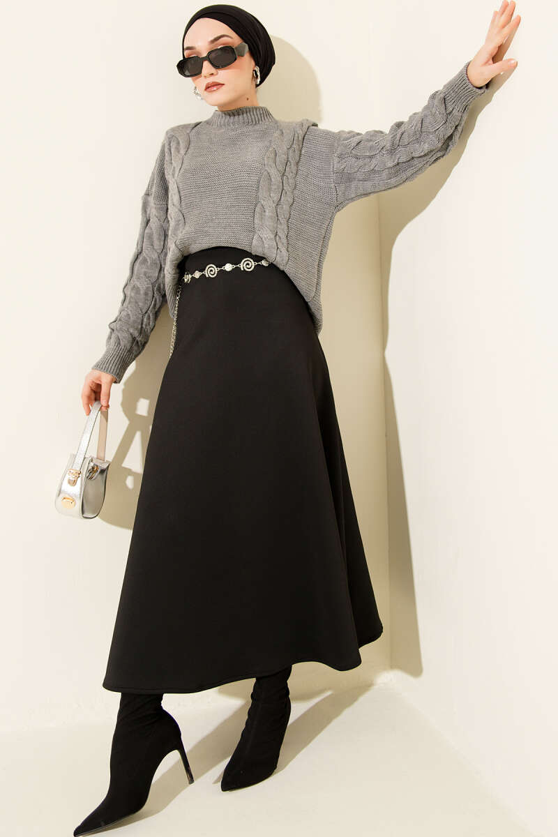Zikzak Desen Ajurlu Triko Kazak Siyah