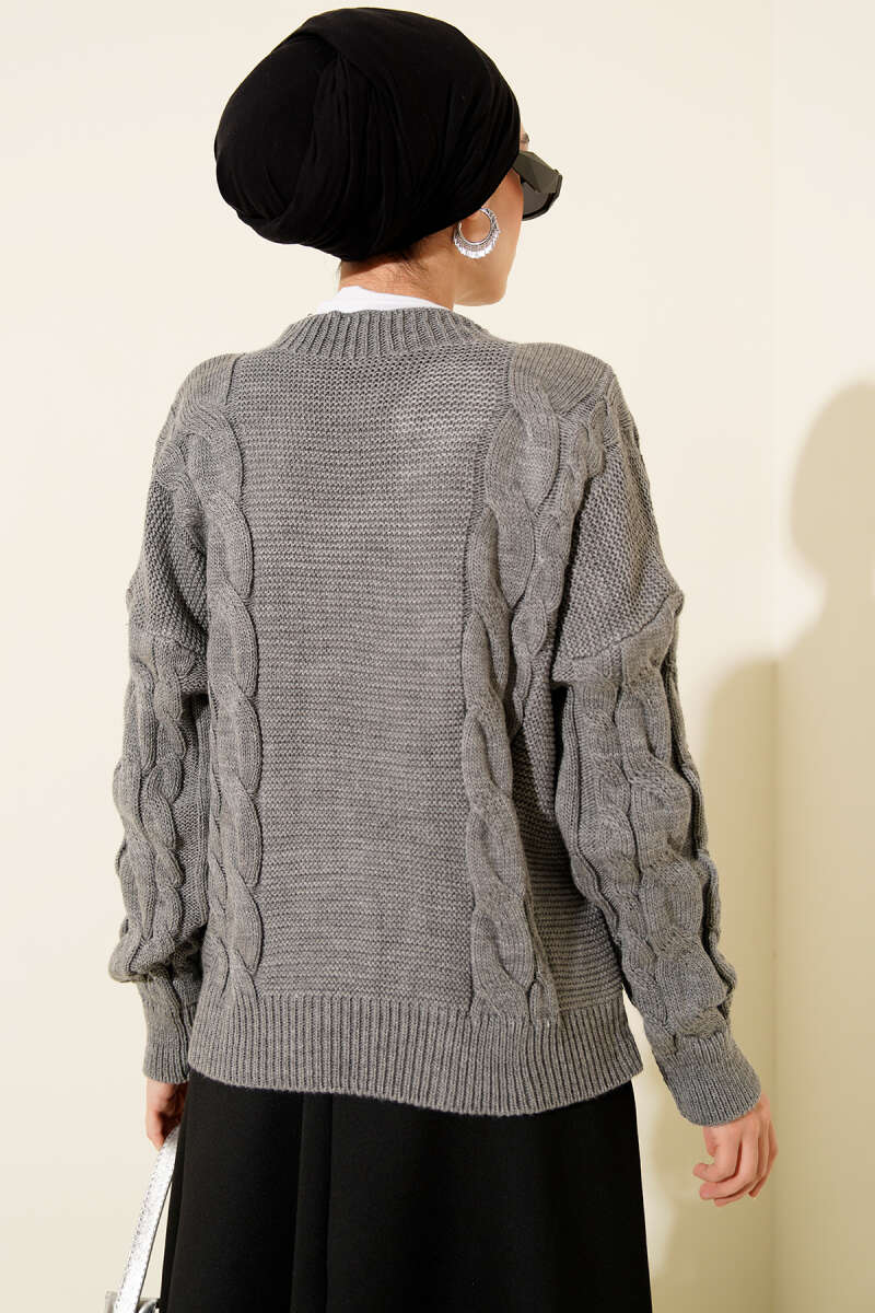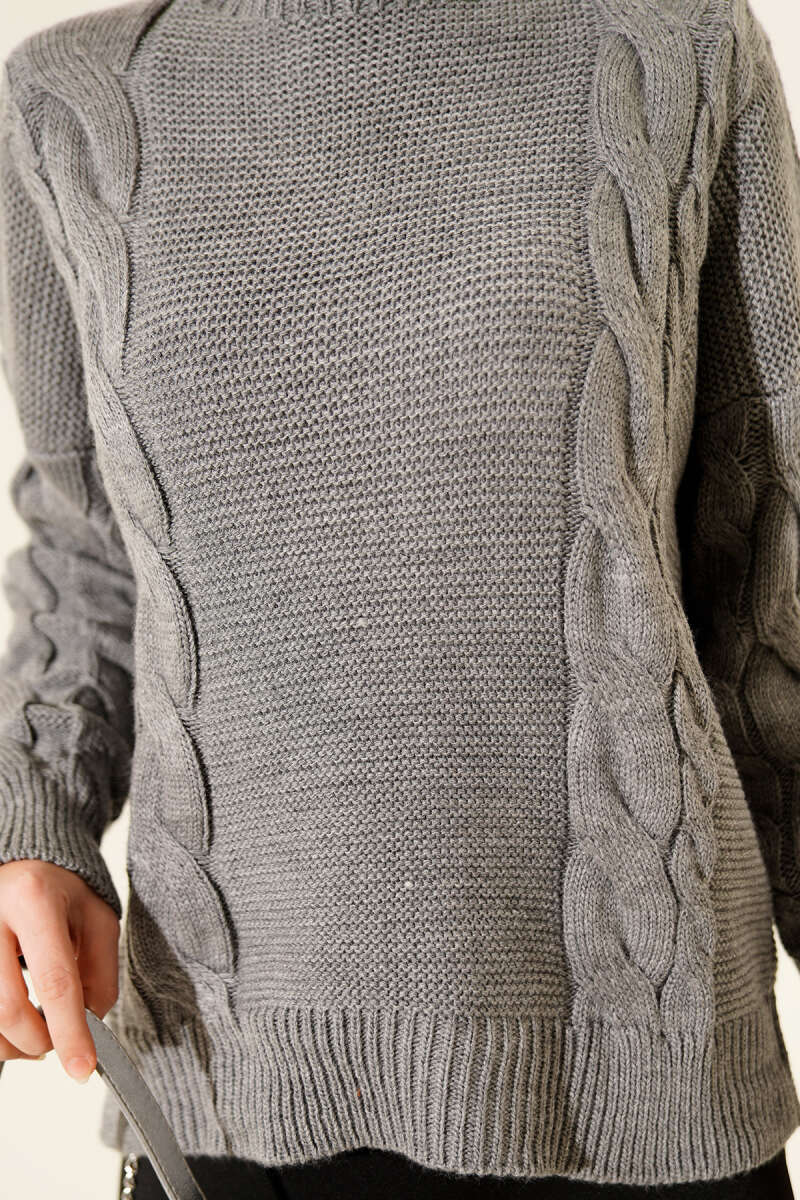 Zikzak Desen Ajurlu Triko Kazak Kahve