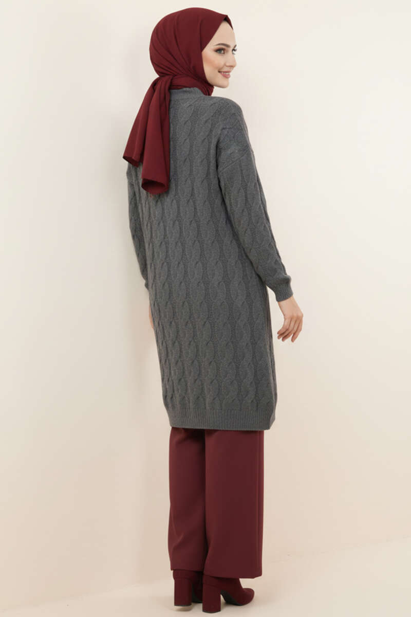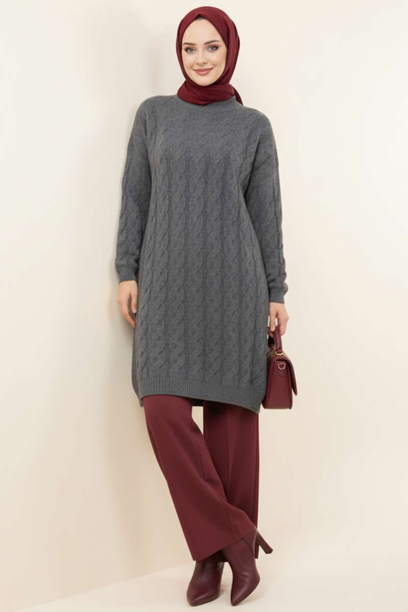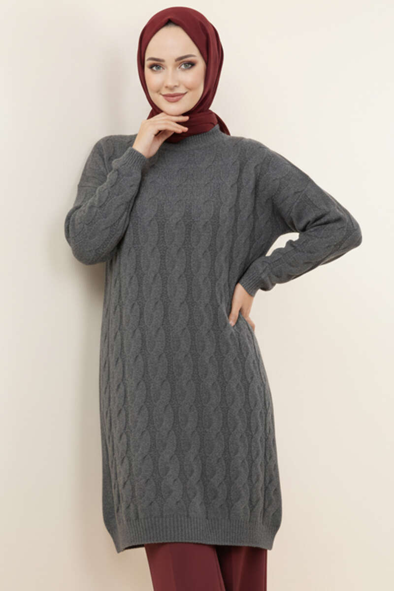 Örgü Kabartmalı Yumoş Triko Tunik Taş
