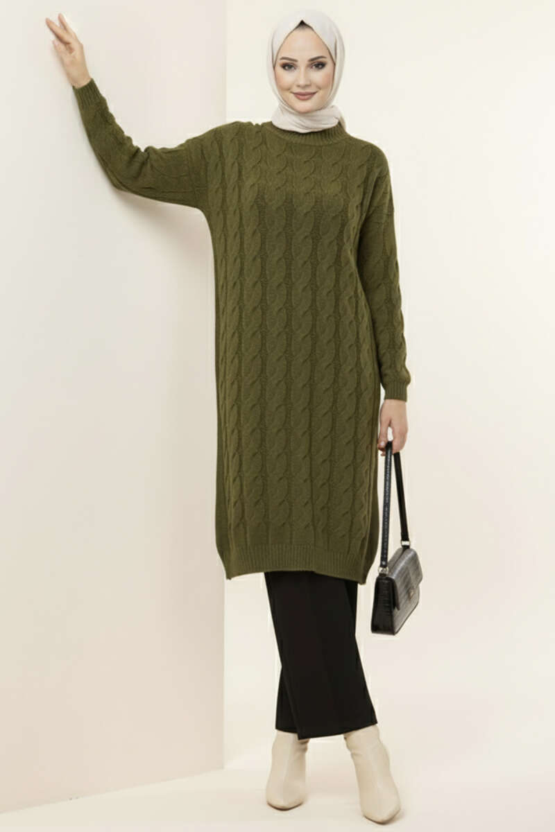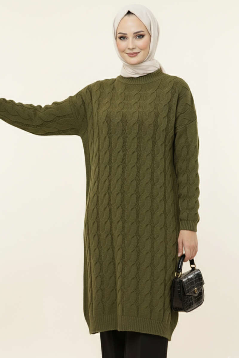 Örgü Kabartmalı Yumoş Triko Tunik Taş