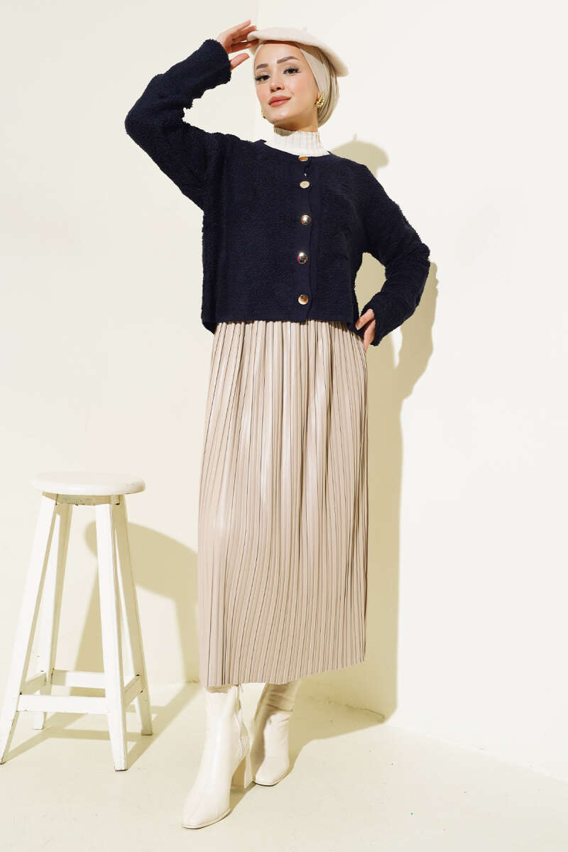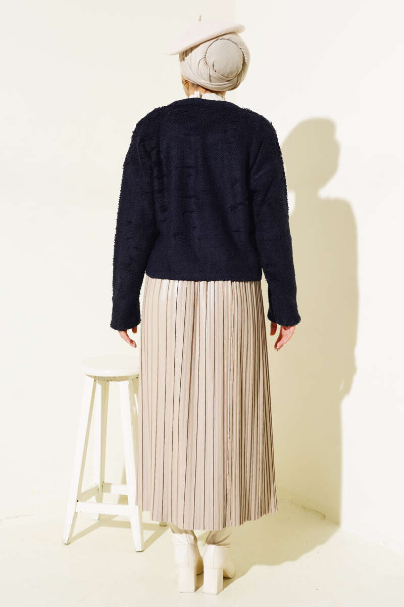 Basic Çift Cepli Uzun Triko Hırka Bej