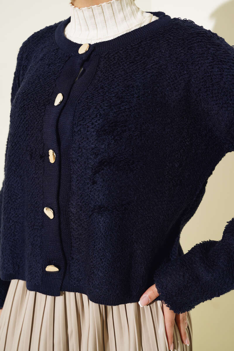 Pirinç Örgü Basic Triko Hırka Nar Çiçeği
