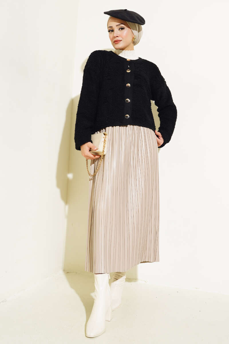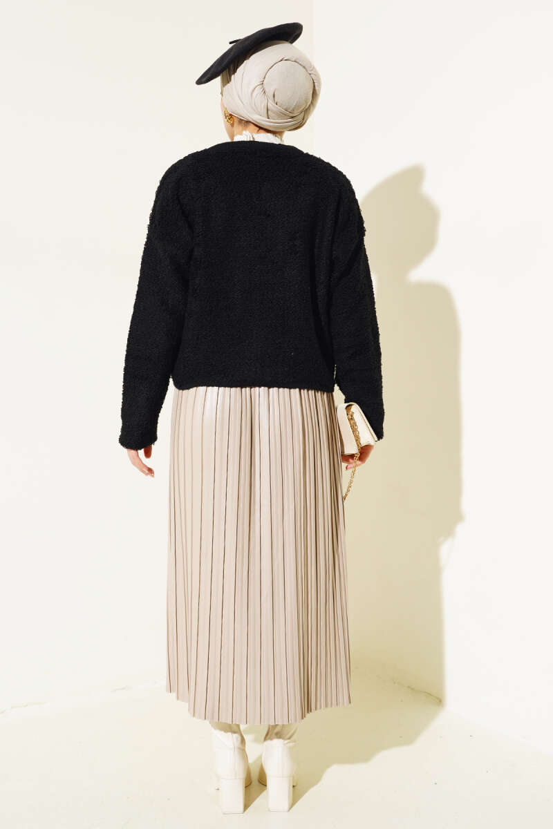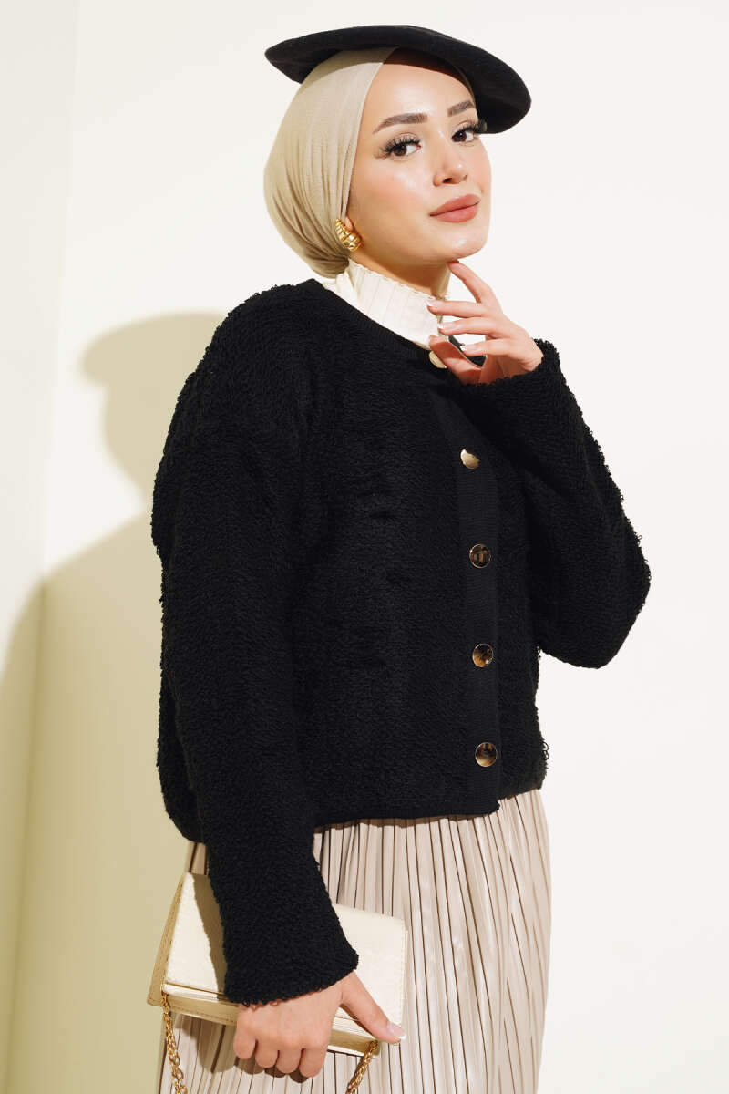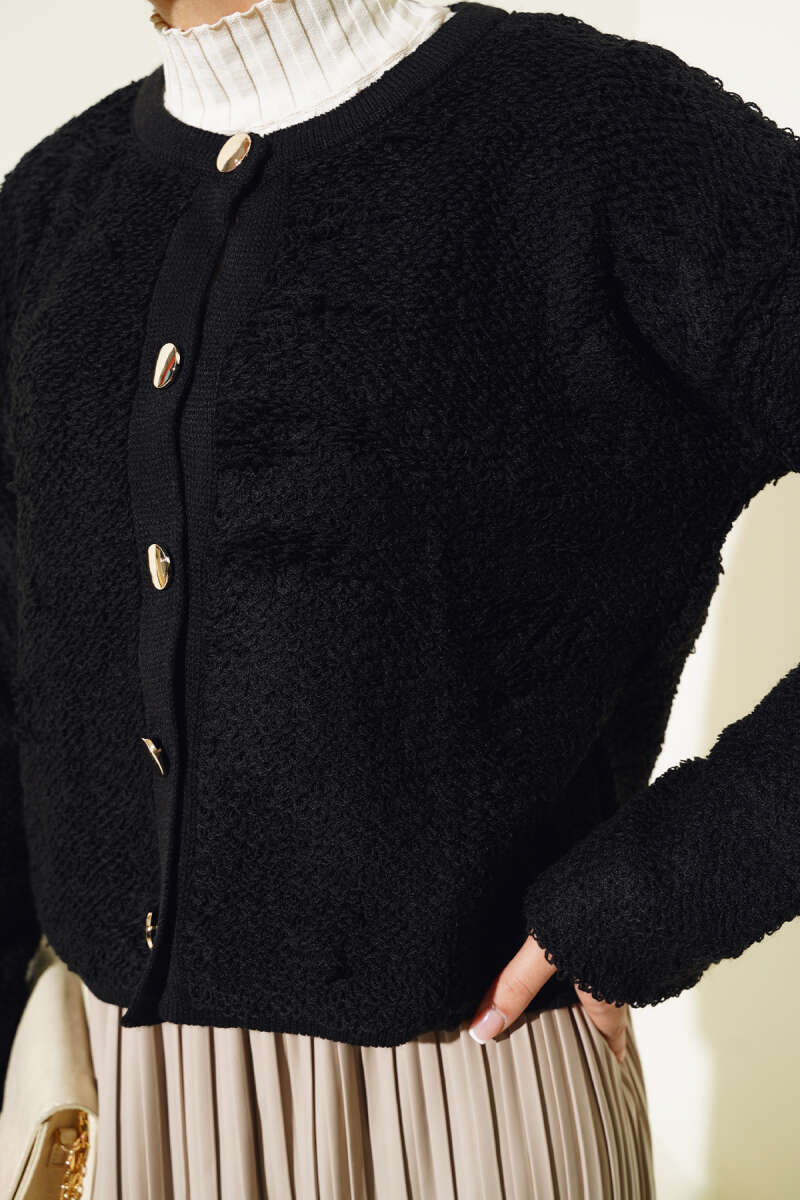 Örgü Düğmeli Kısa Hırka Siyah