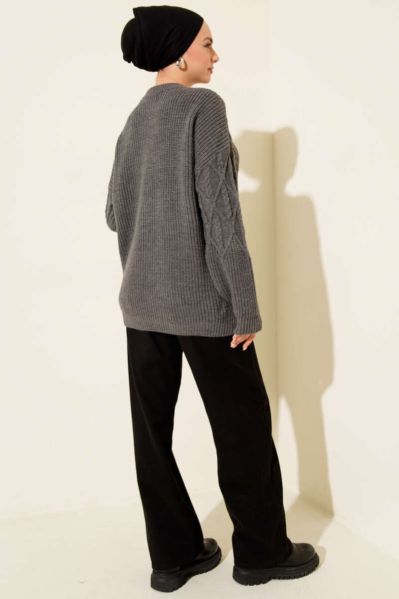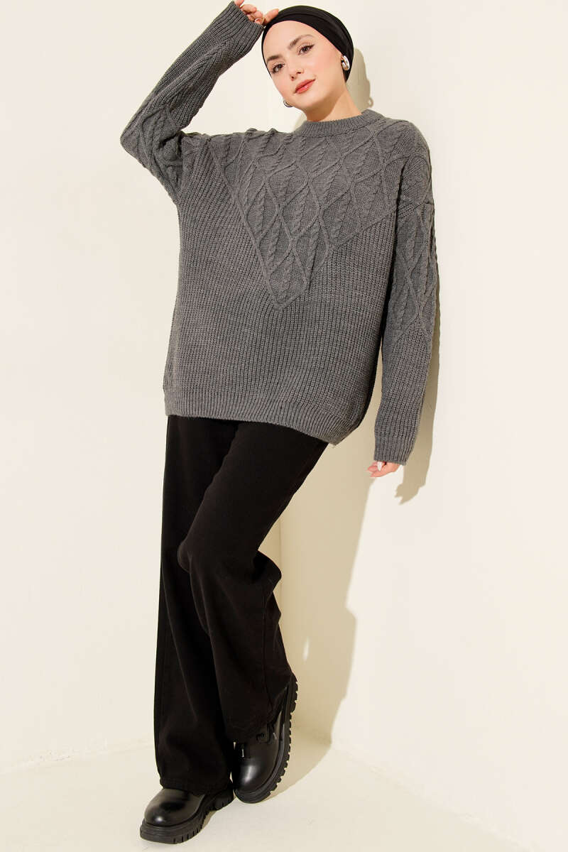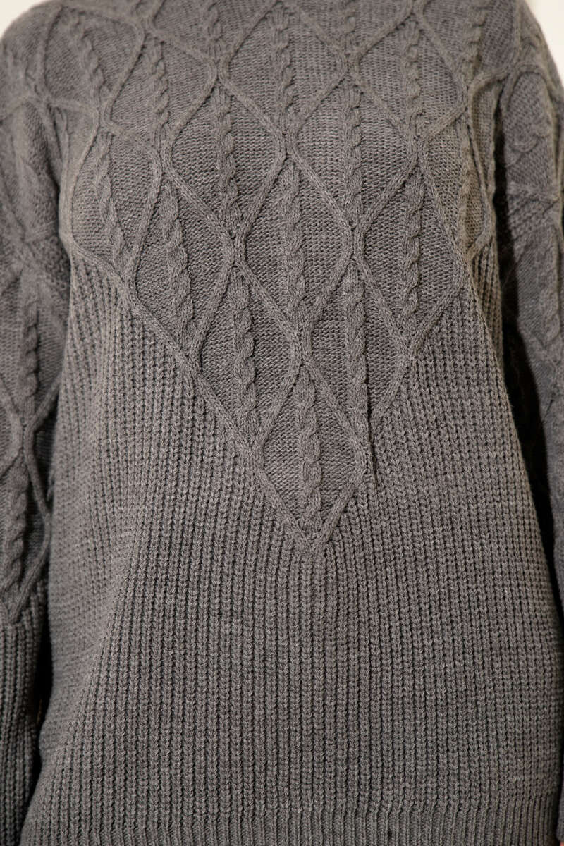 Örgü İşlemeli Triko Kazak Füme